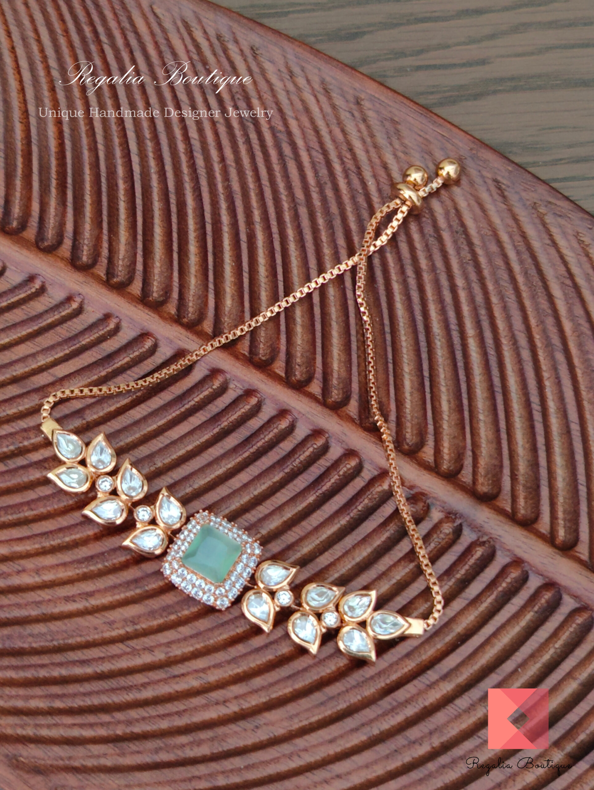 Adjustable Mint Kundan Bracelet