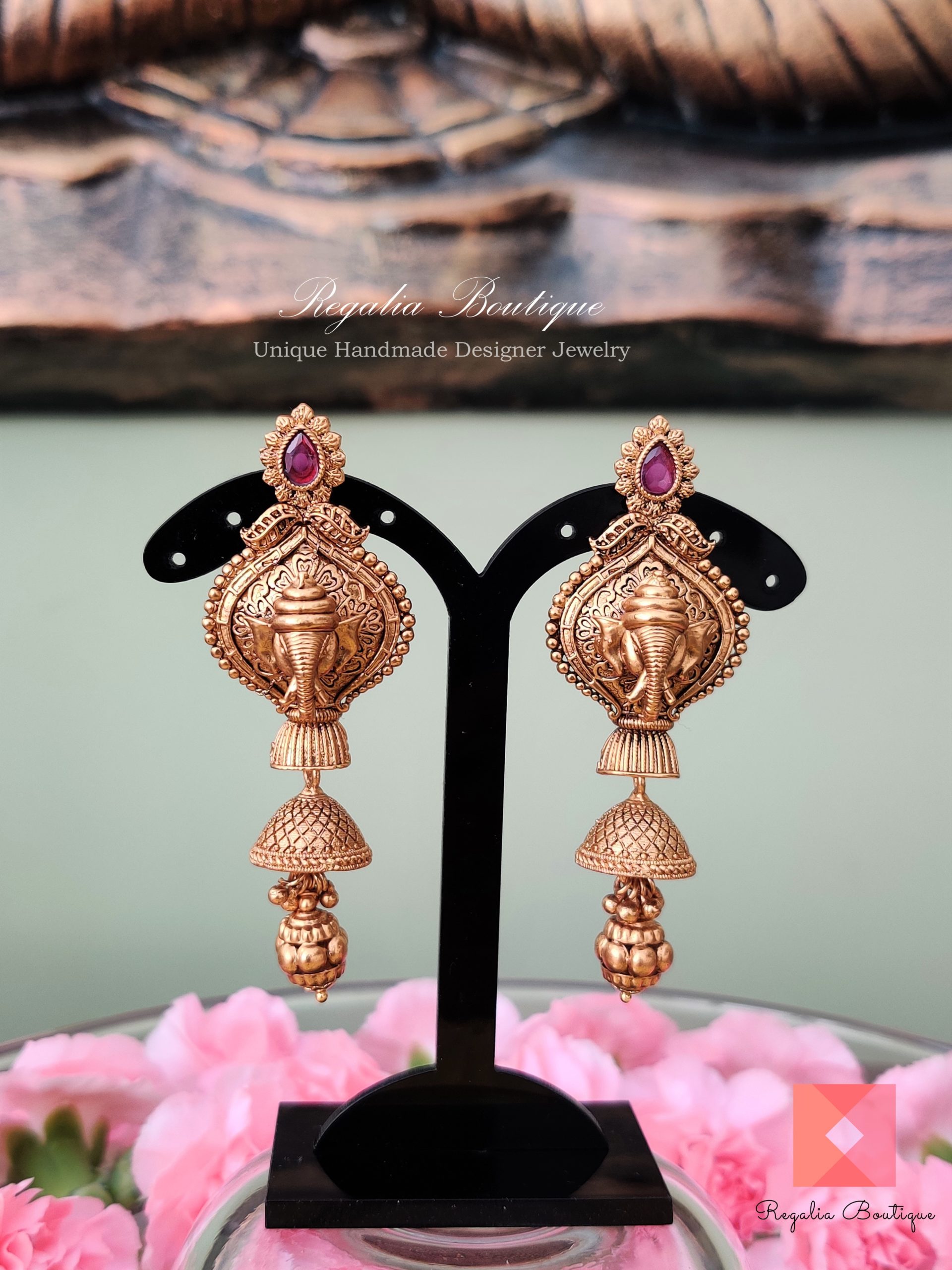 Antique 3D Ganesha Danglers quantity