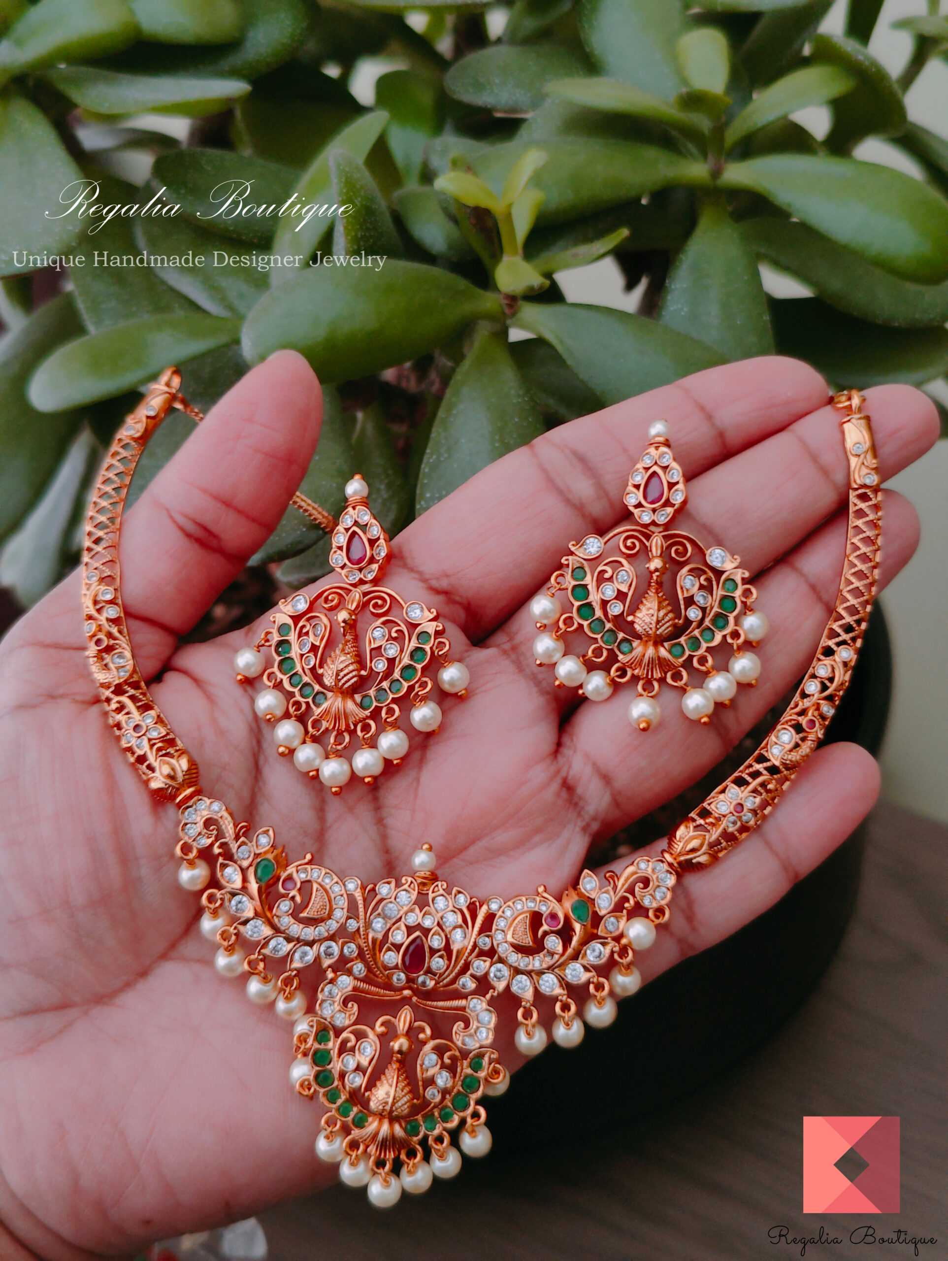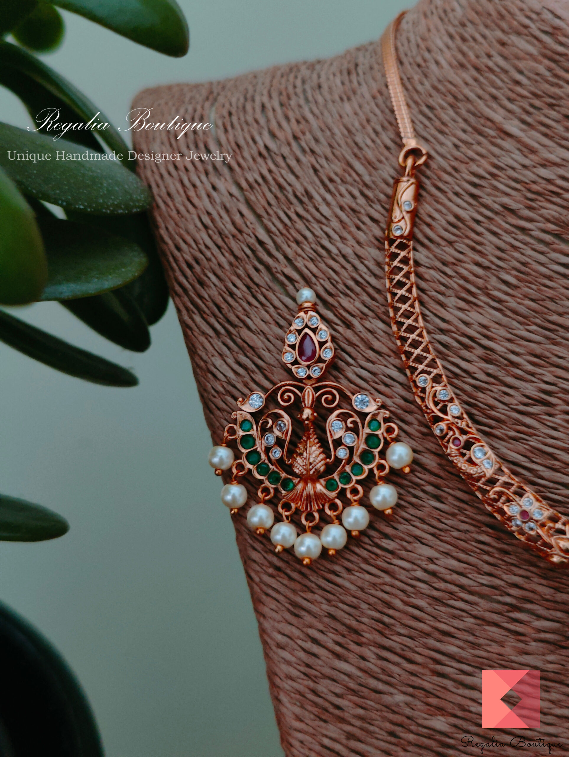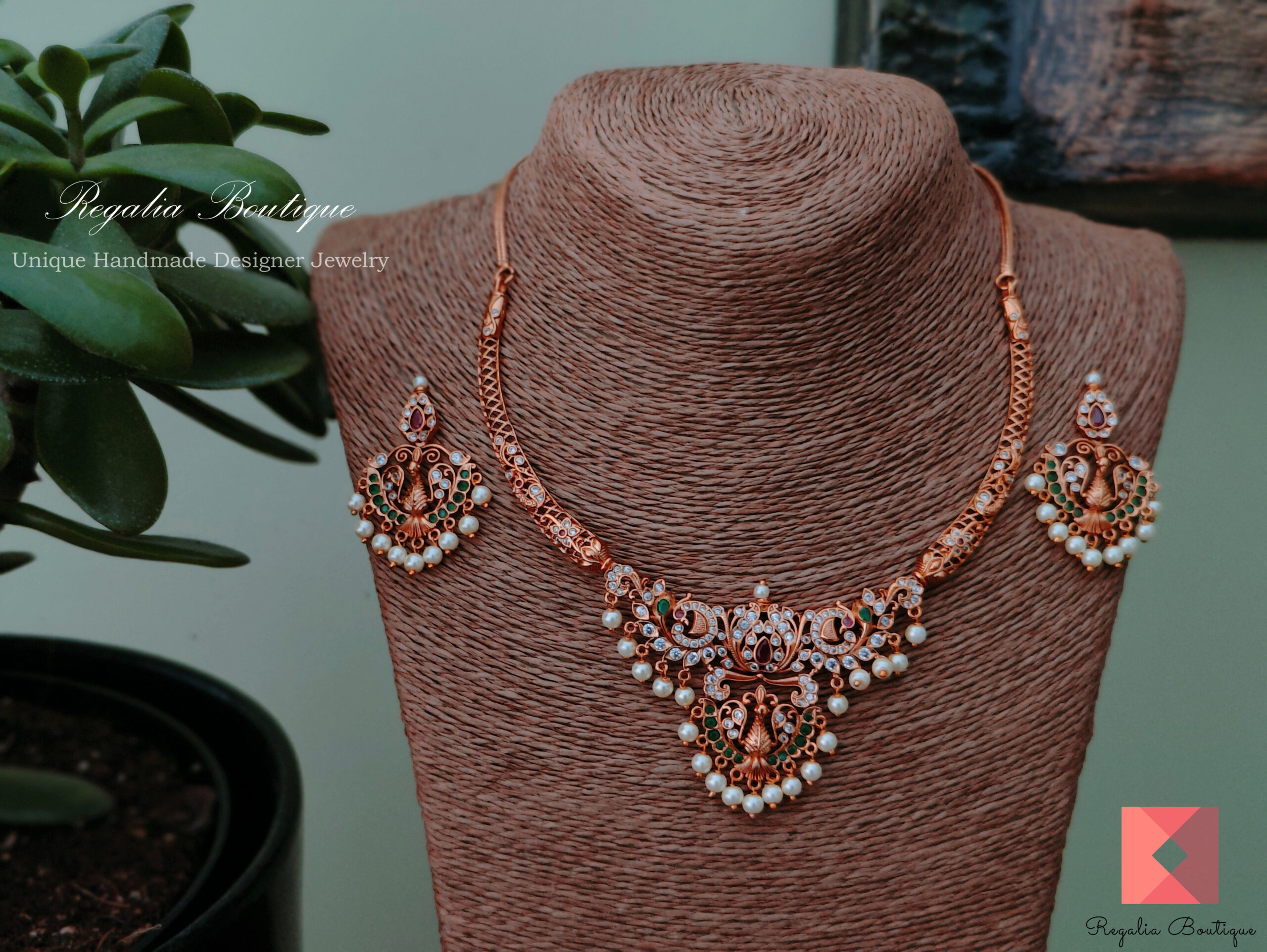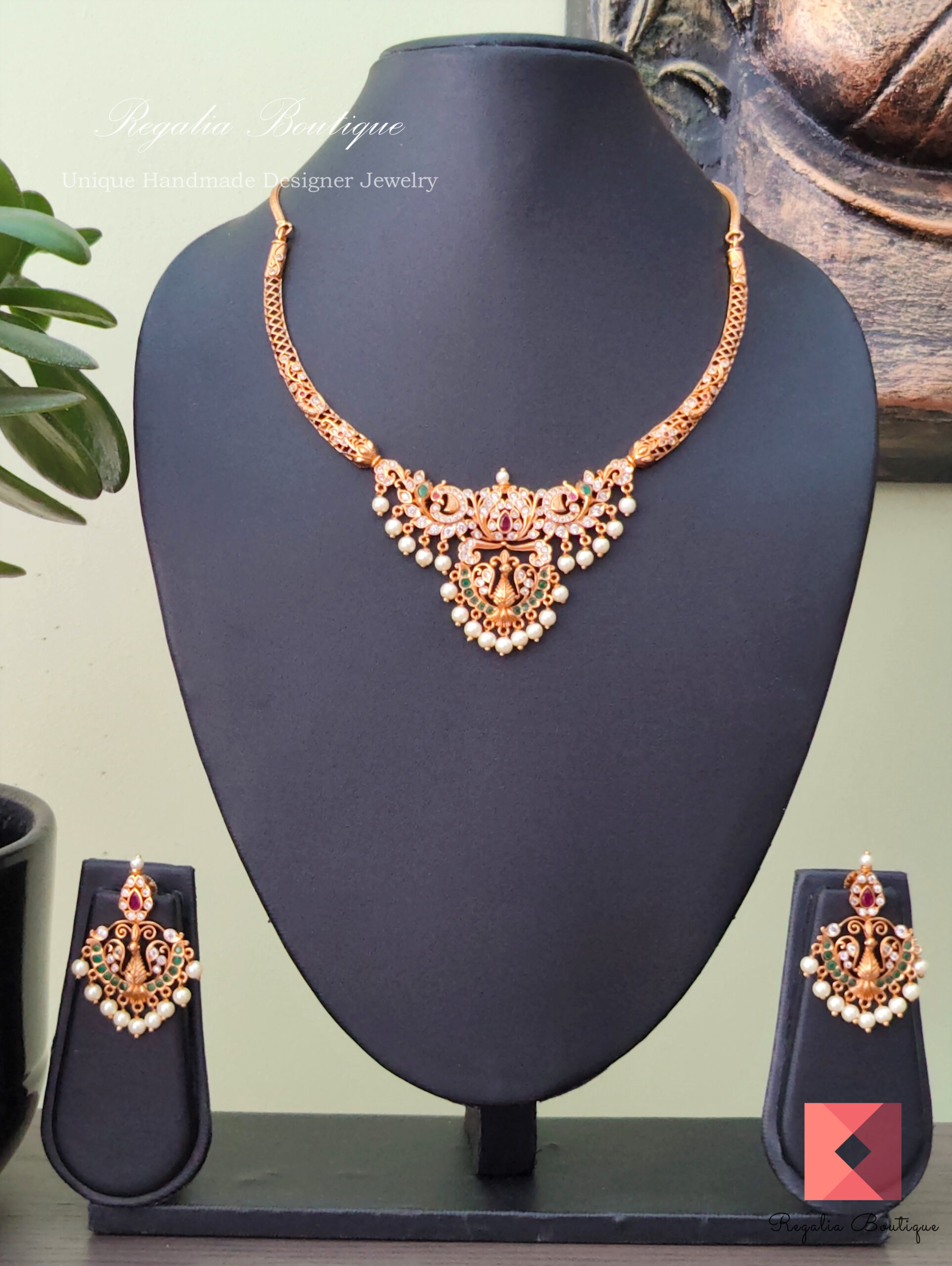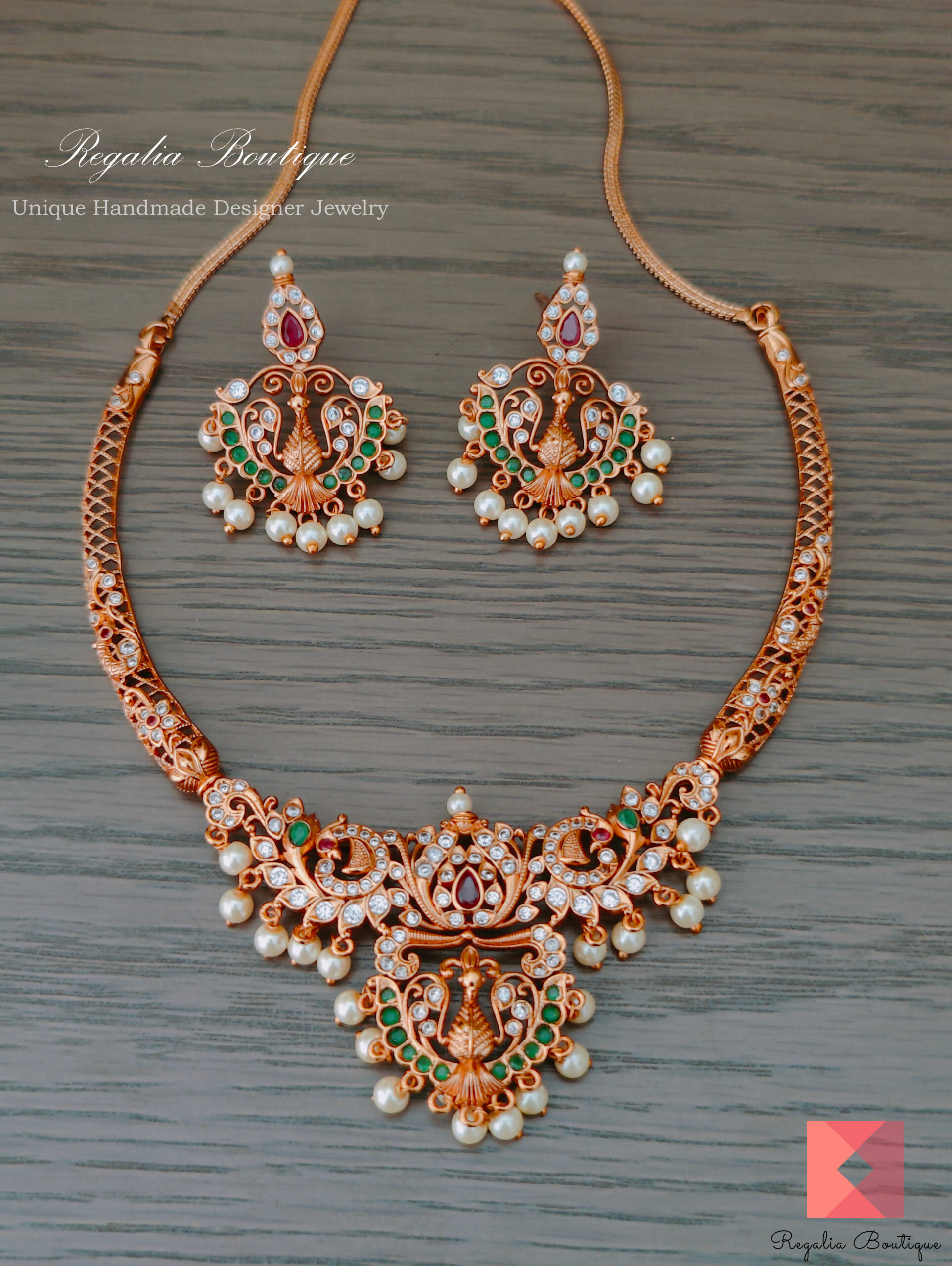 This elegant antique necklace set featuring peacocks and studded with cz stones is a timeless design that looks good on ethnic wear.