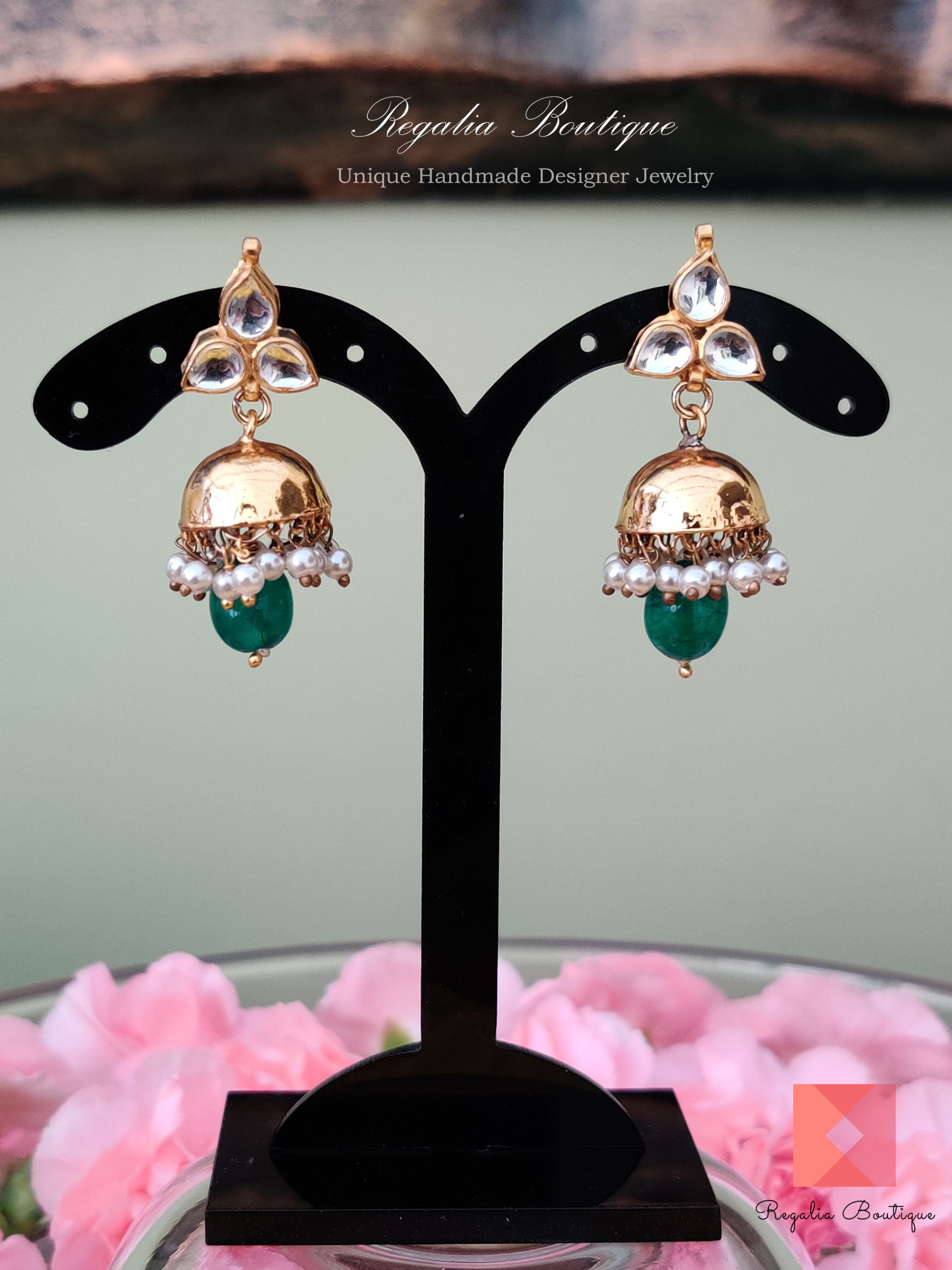 Charming Green Kundan Jhumka