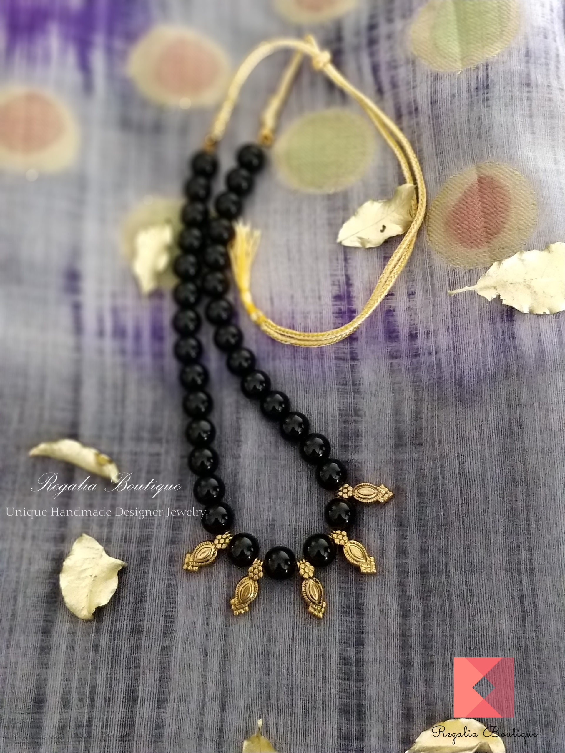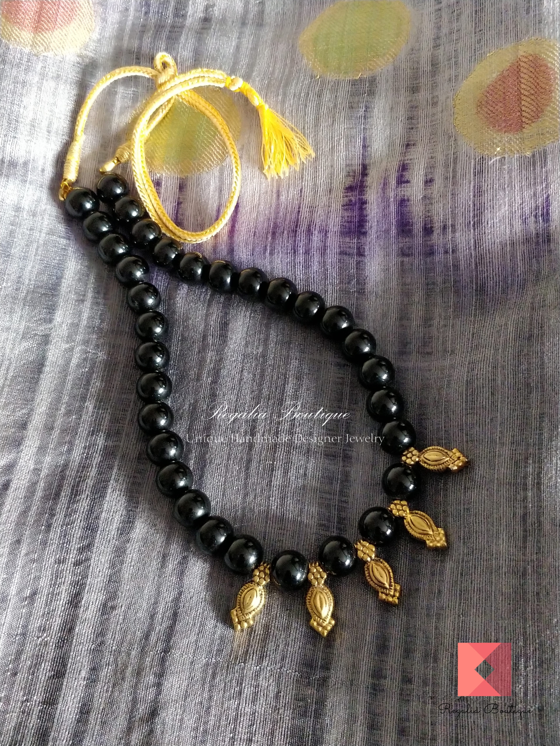 A classic and totally ethnic black beads necklace with antique charms.