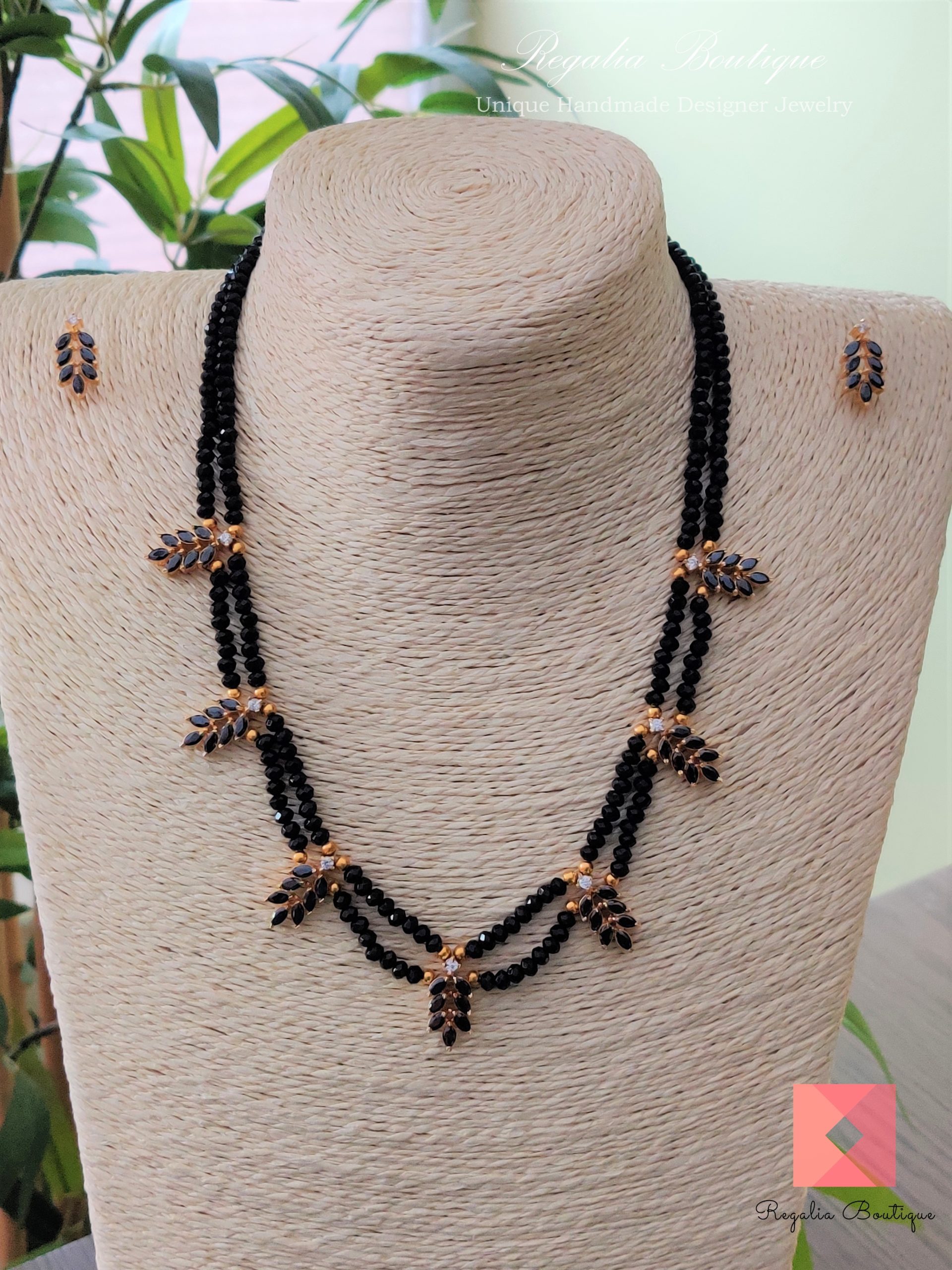 An all time favourite black necklace set, that’s attractive and chic with black crystal leaves.