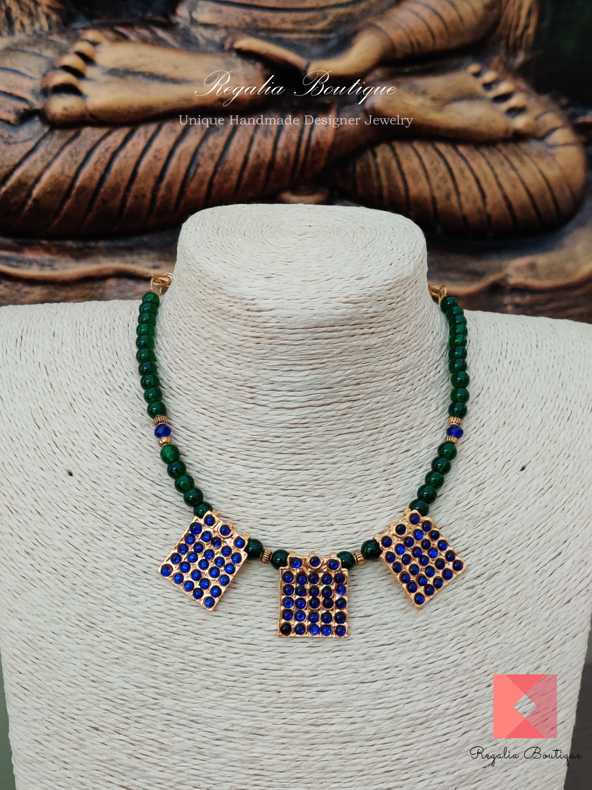 An ethnic blue kemp stone multi pendant necklace combined with green onyx beads.