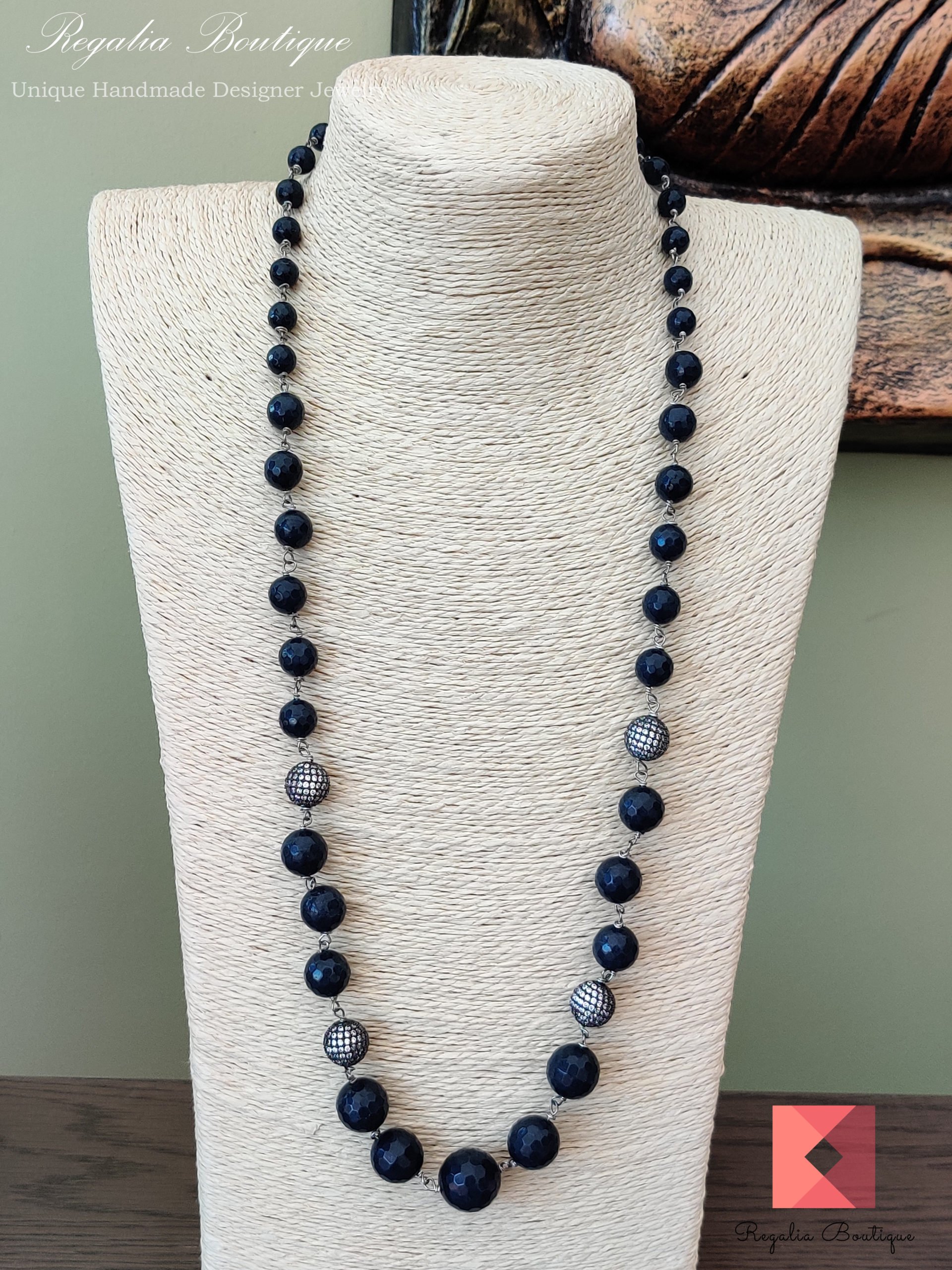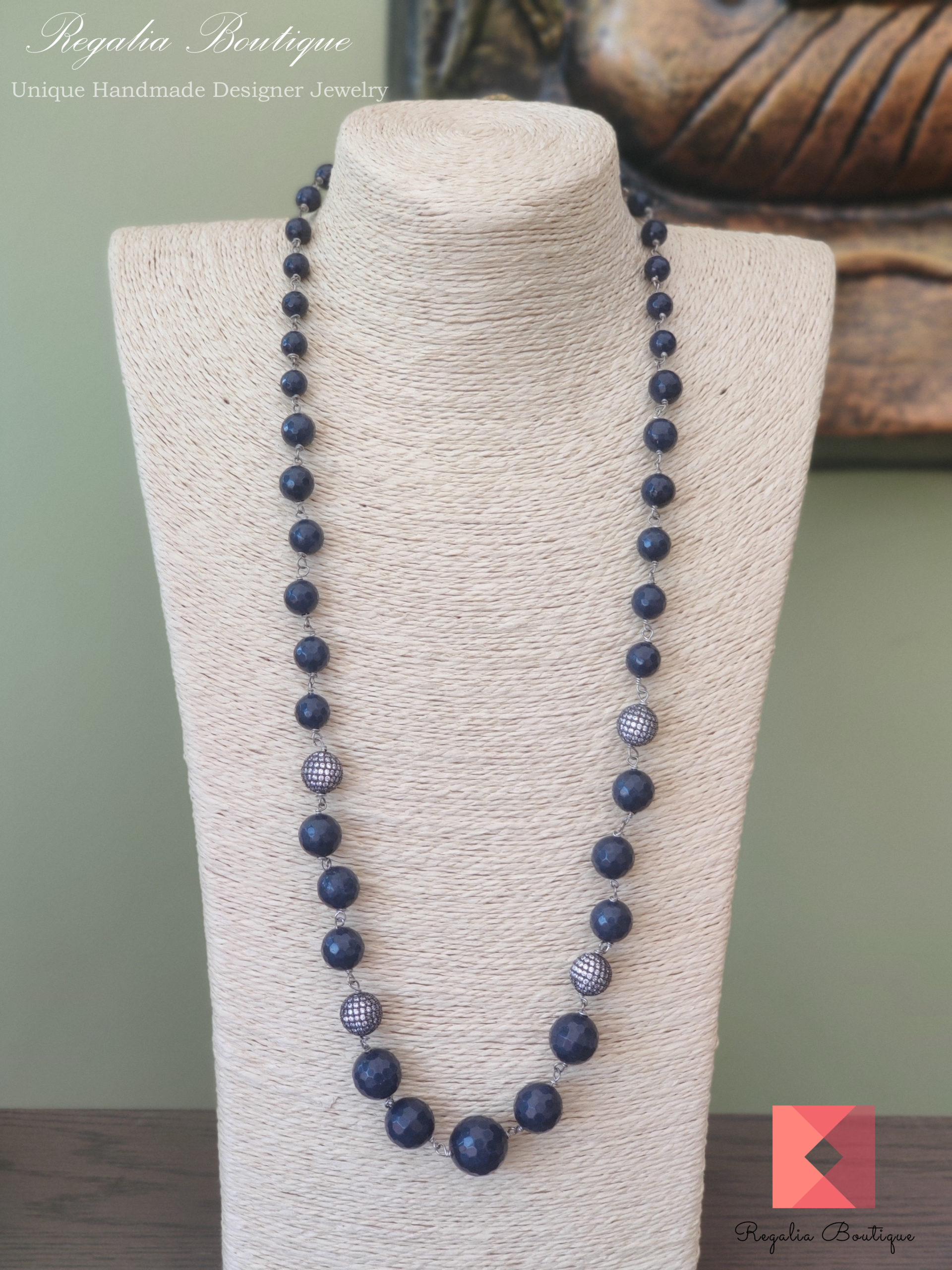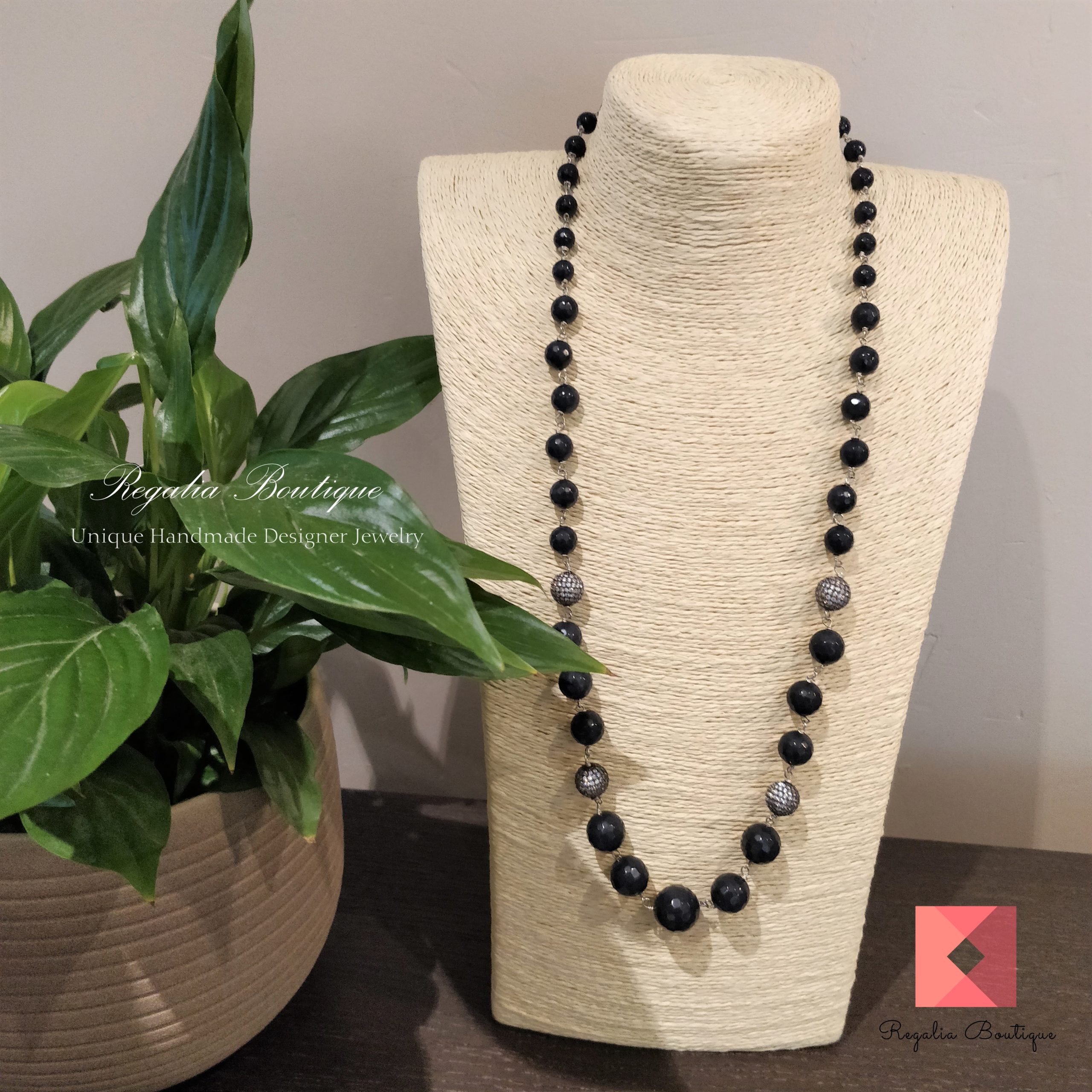 Sparkle with this dark grey coloured semi-precious bead necklace combined with american beads, it instantly adds glamour and contemporary look to your outfit.
