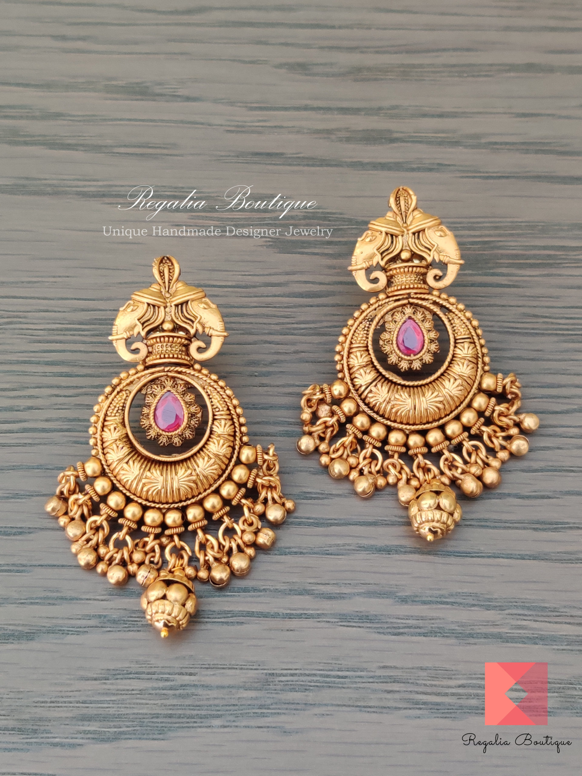Dual Elephant Antique Ruby Earrings.