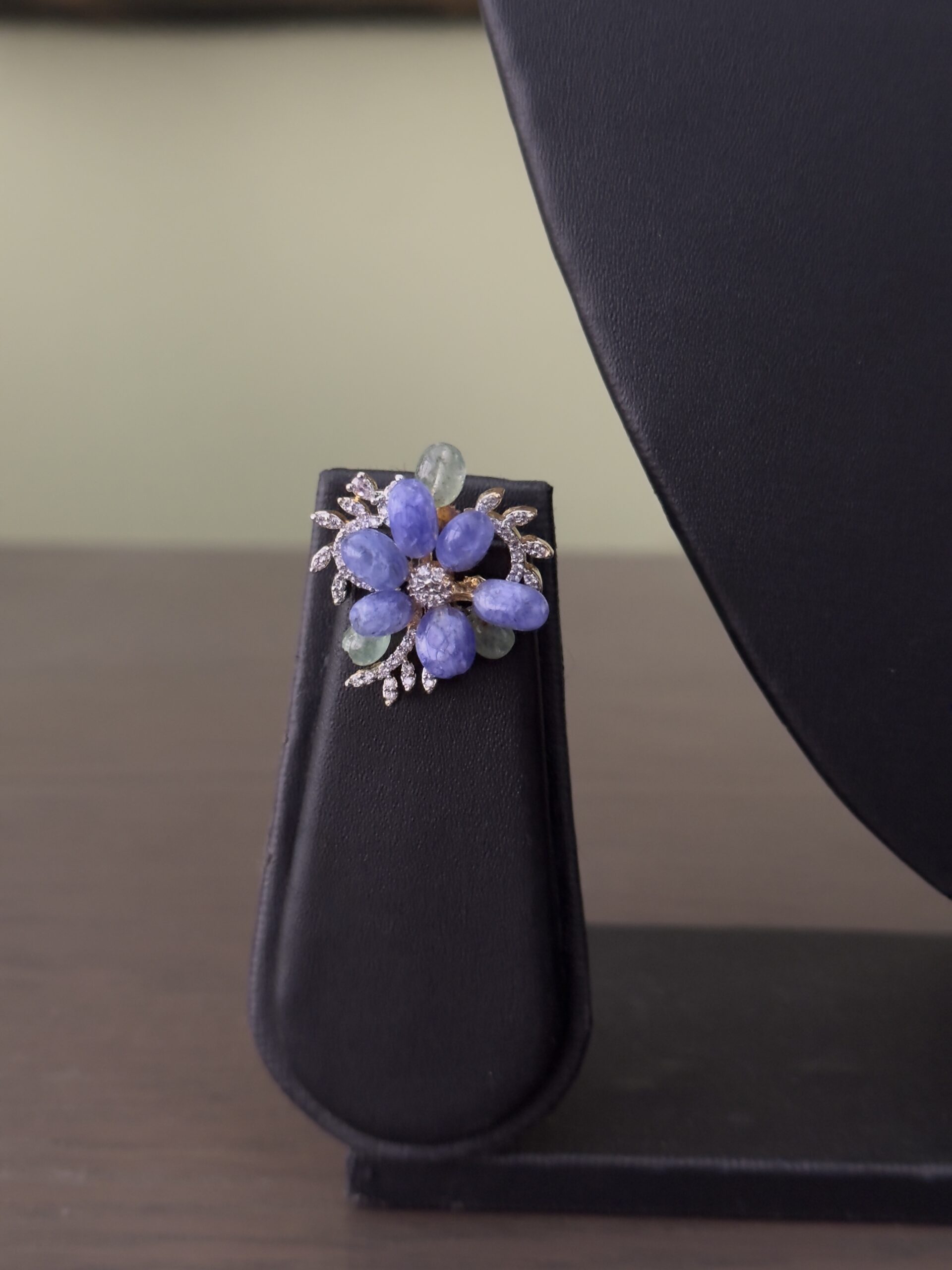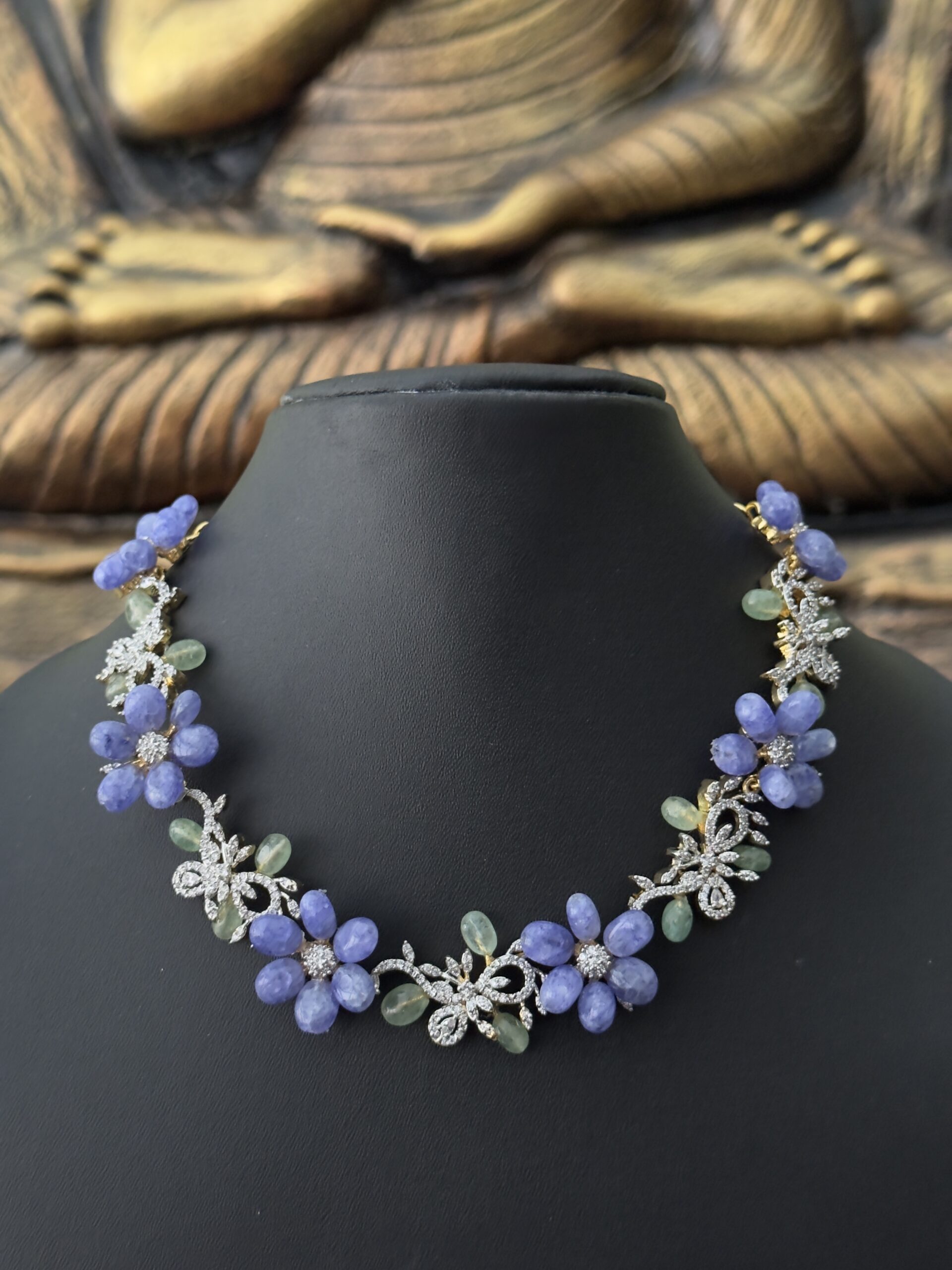 Elevate your style with this exquisite Fusion Modern Jewellery piece, a perfect blend of elegance and contemporary charm. Delicately crafted with precious pastel lavender and pastel green beads, the design features intricate floral arrangements that exude grace and sophistication. Sparkling CZ stones add a touch of brilliance, enhancing the beauty of this statement accessory. Perfect for special occasions, this timeless piece adds a refined touch to your ensemble, making you stand out with effortless elegance.