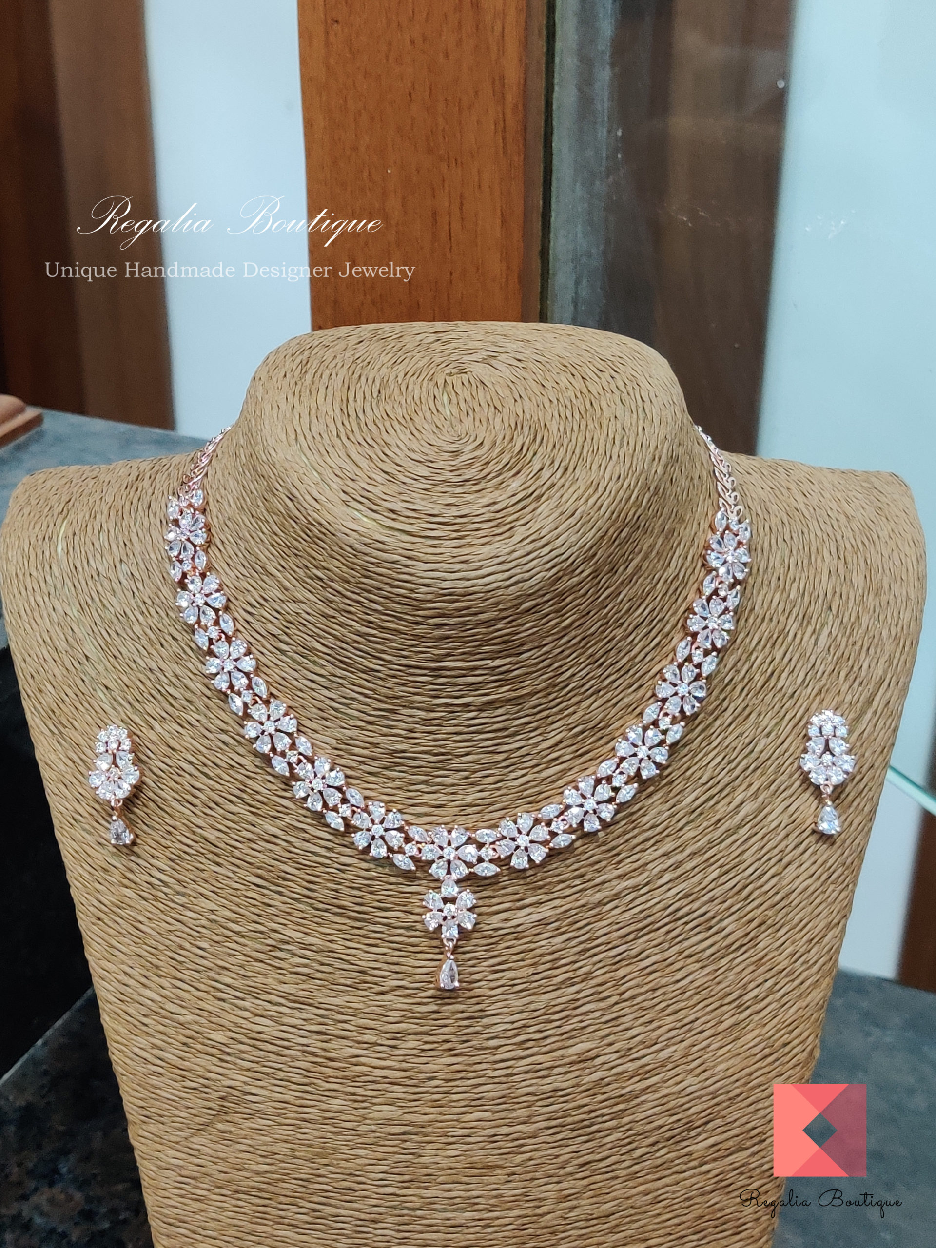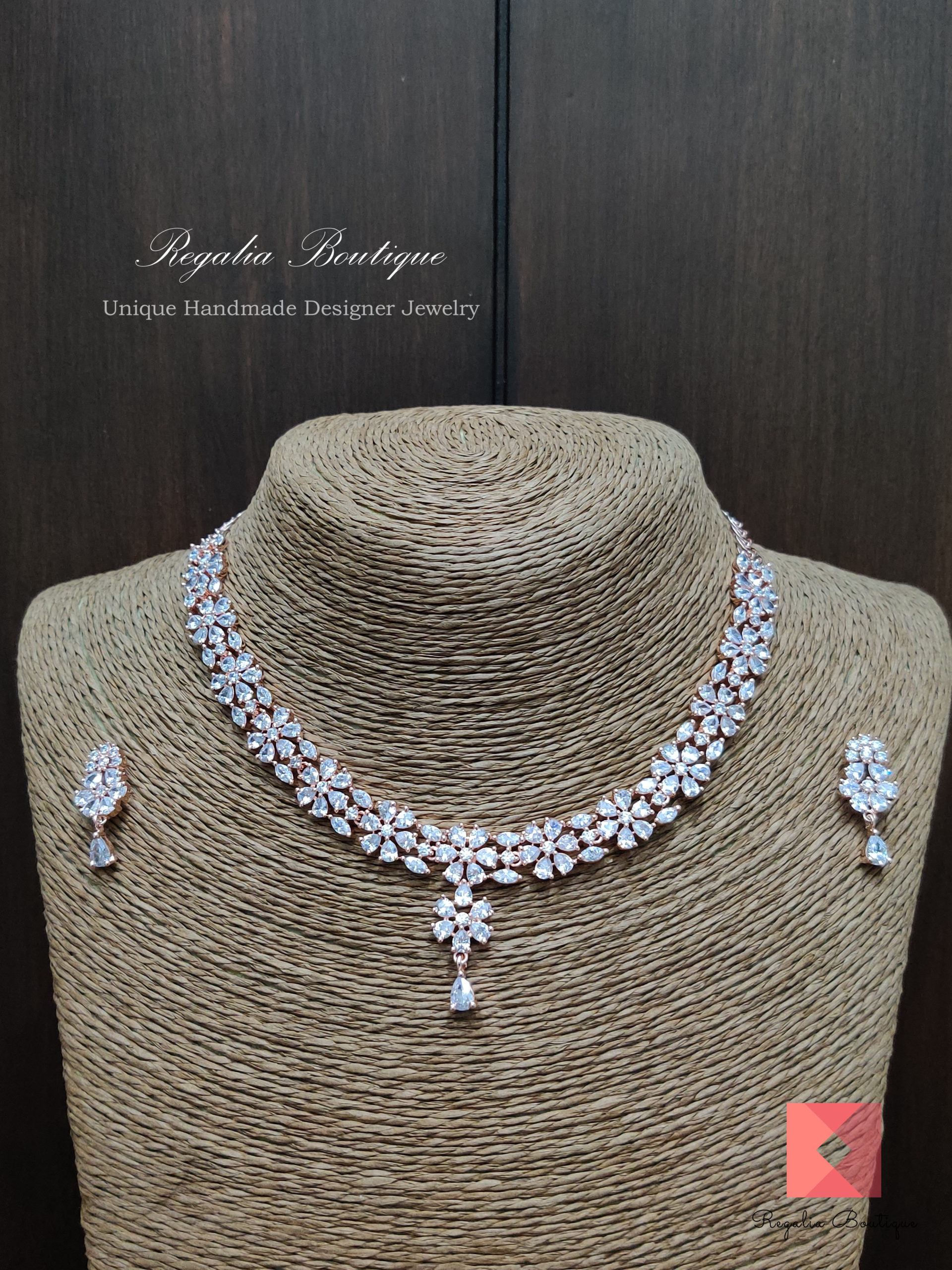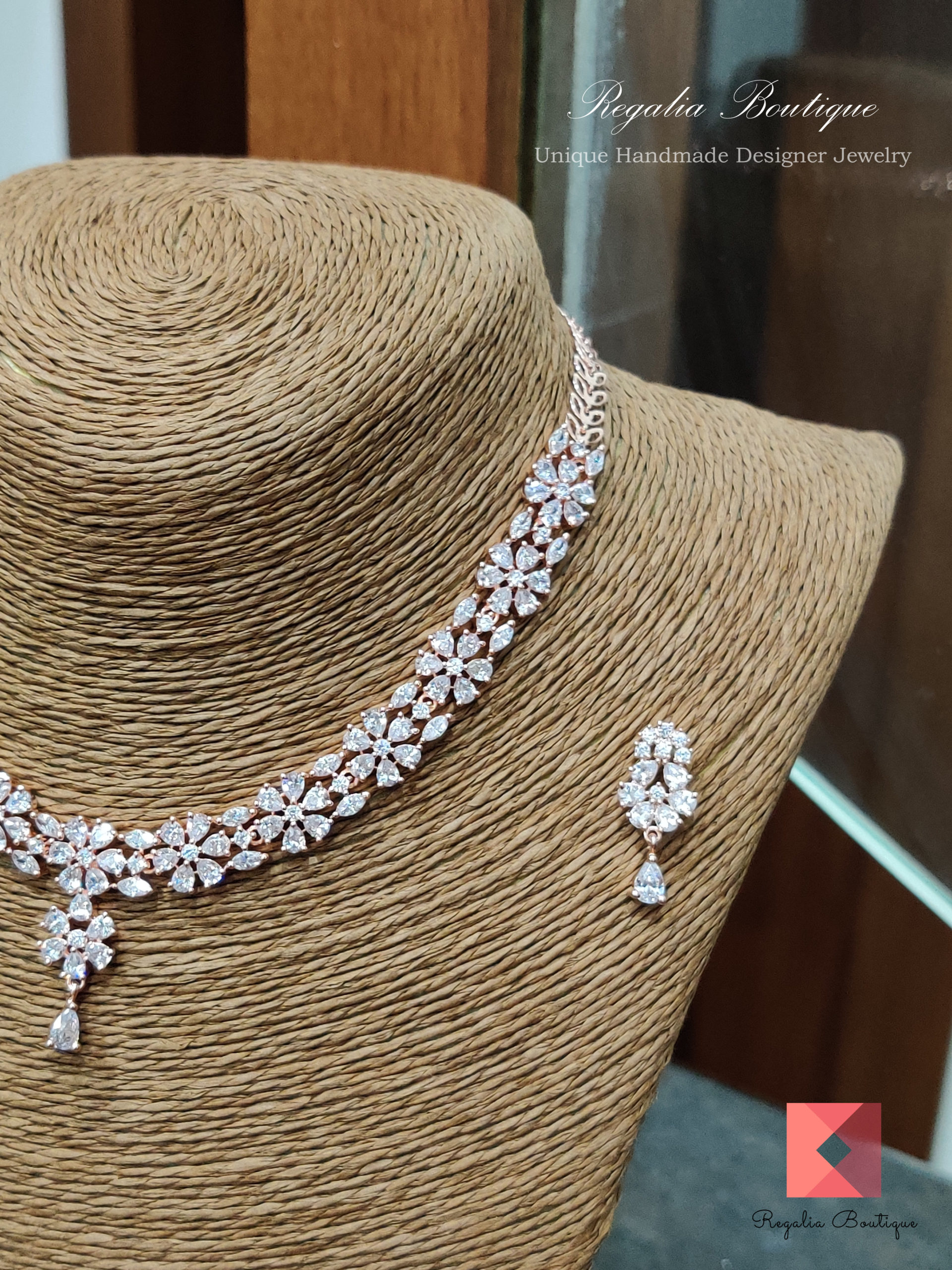 Floral Zircon Choker Necklace Set quantity