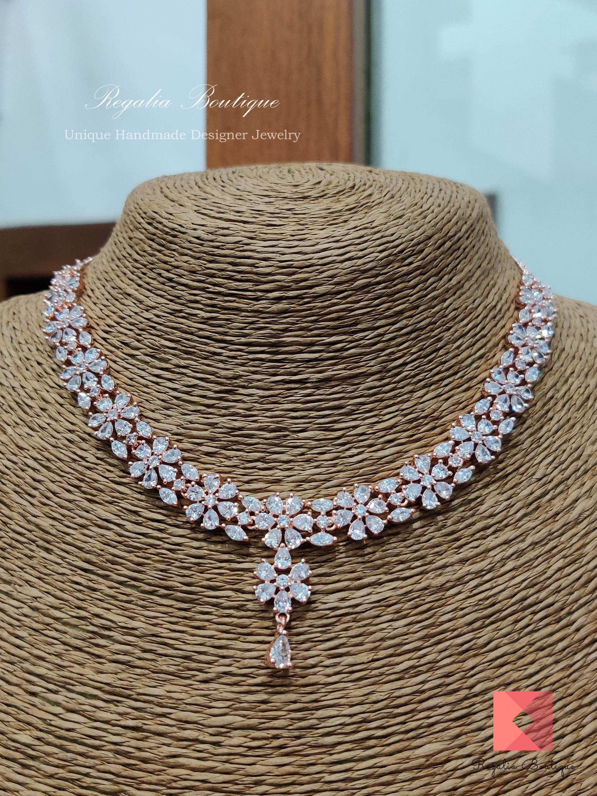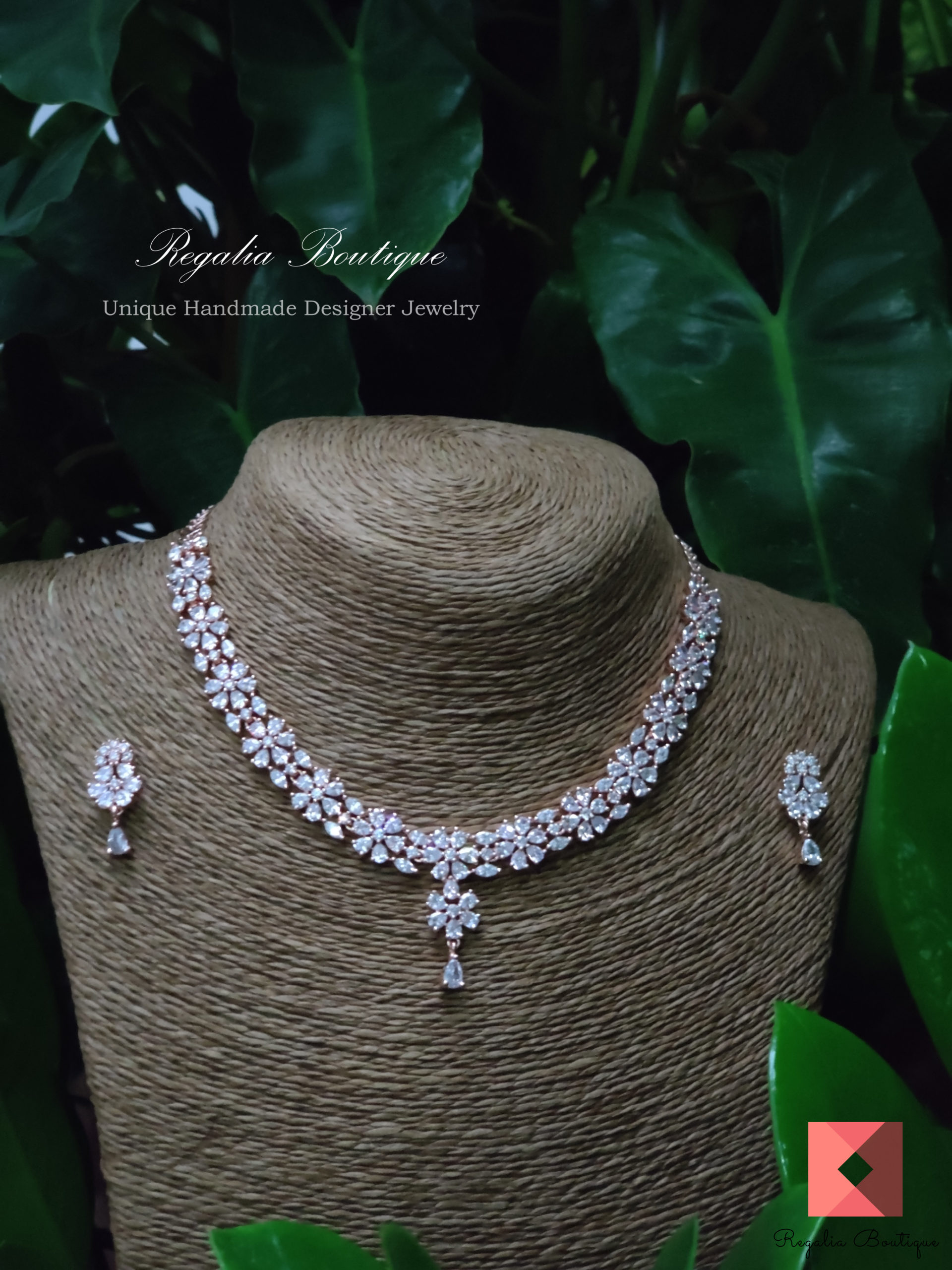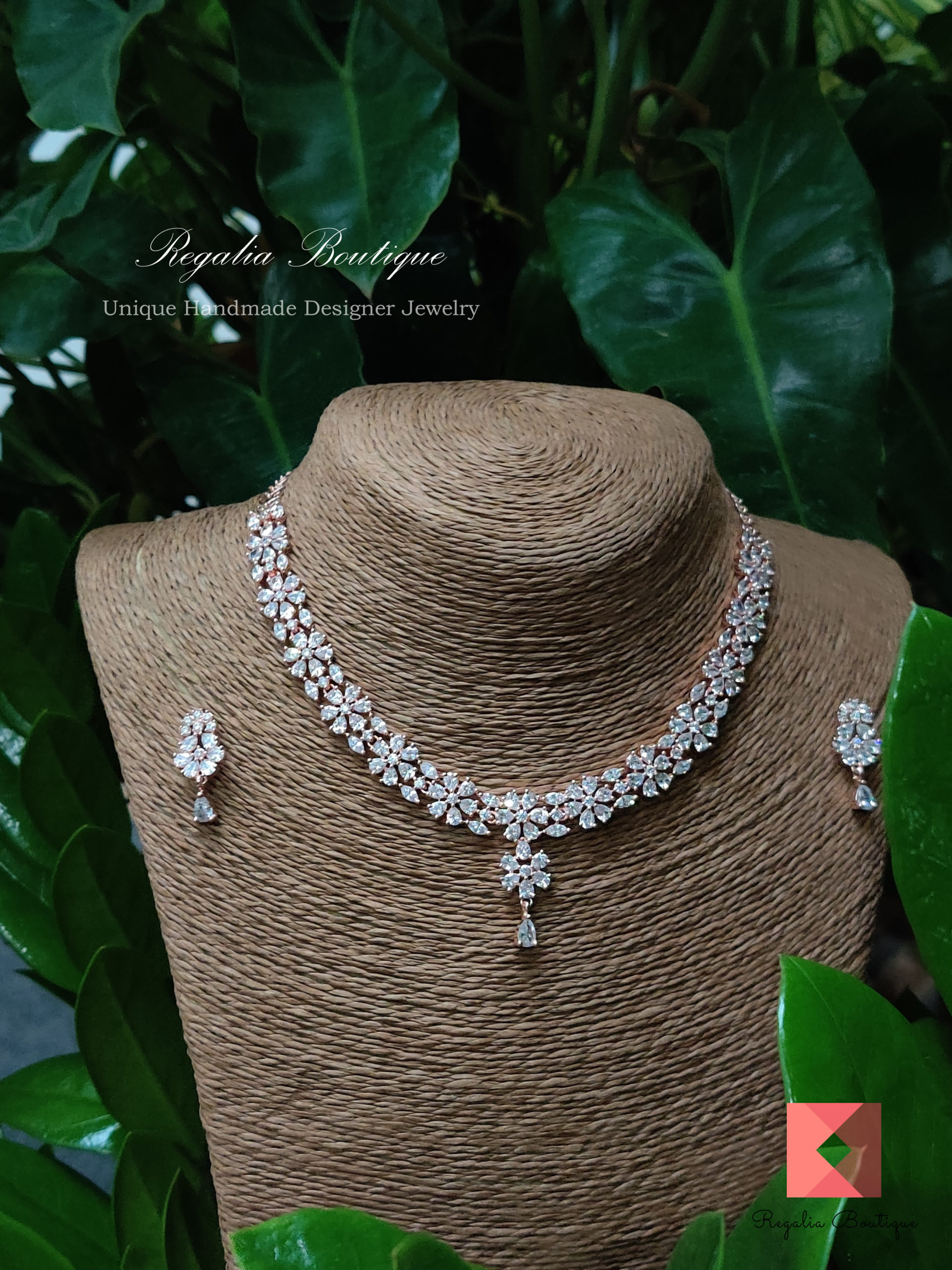 Floral Zircon Choker Necklace Set quantity