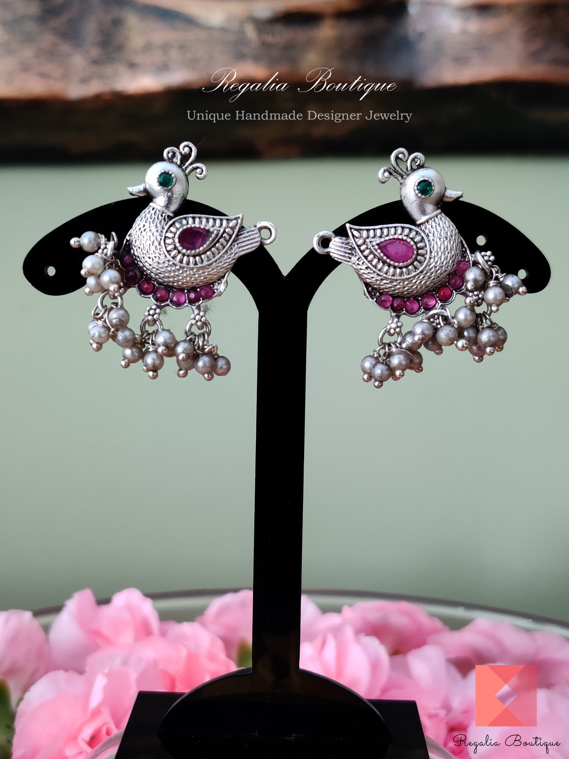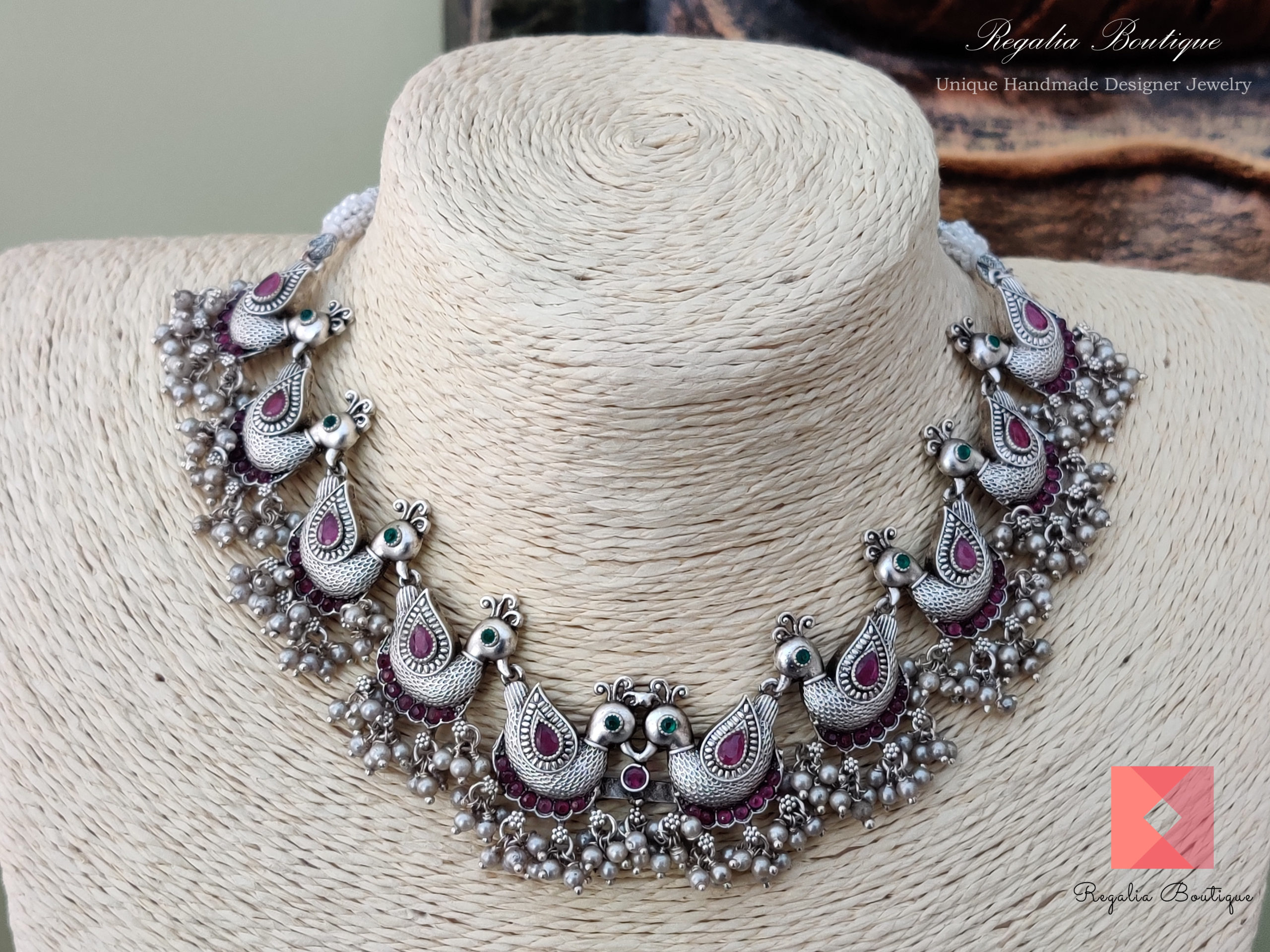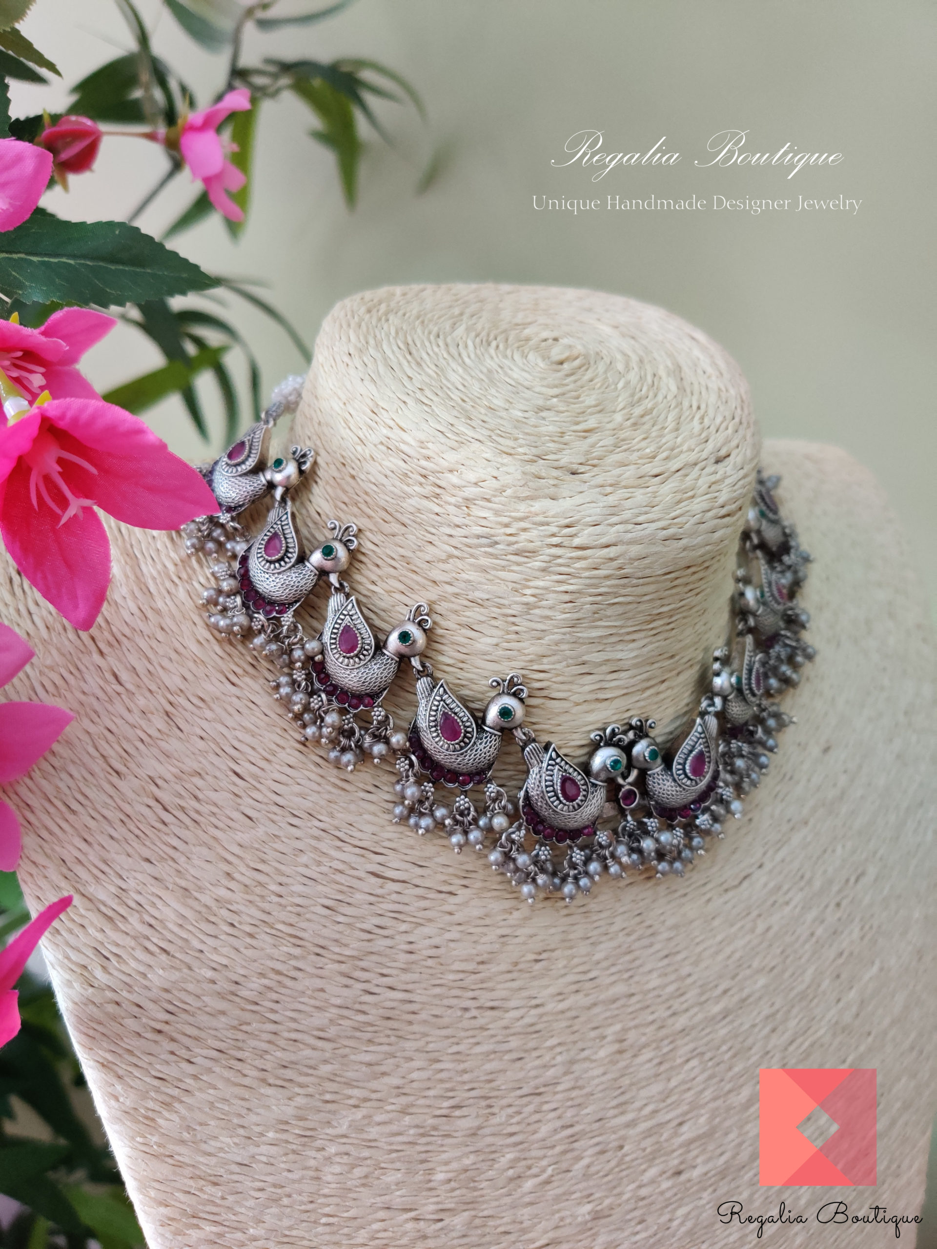 This divine German Silver Swan Necklace made diligently by the finest craft team. Its ornamented with magenta and green kemp stones. Its a real charmer.