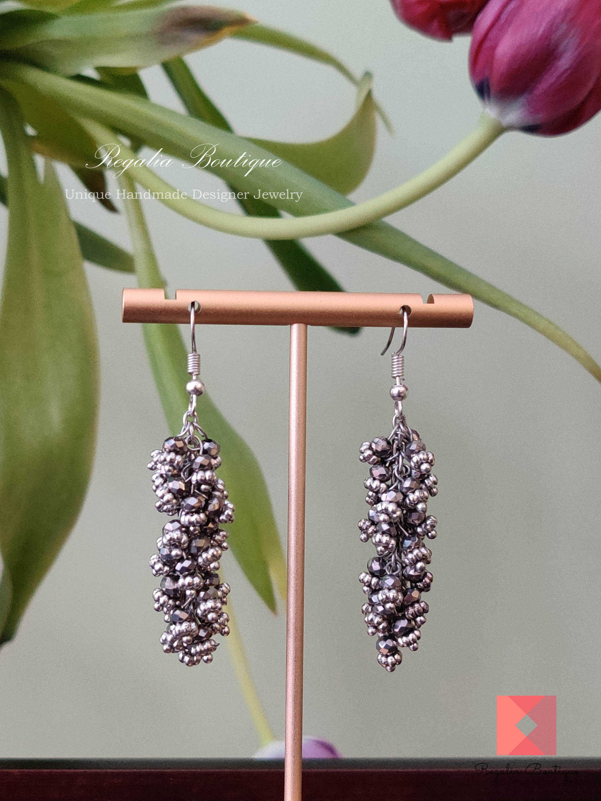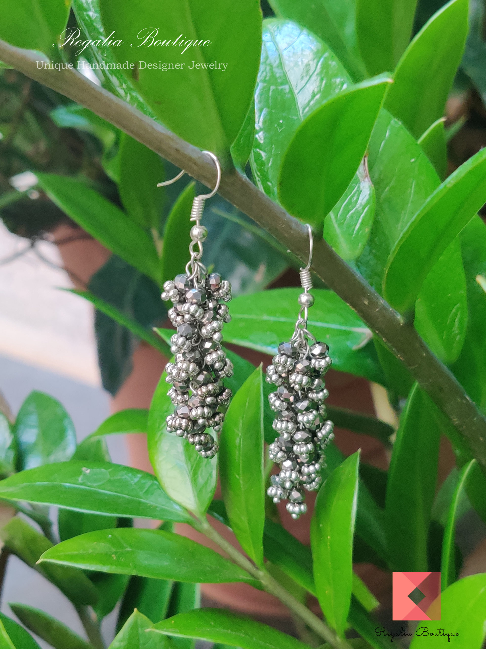 Grey Crystal Cluster Hook Earrings quantity