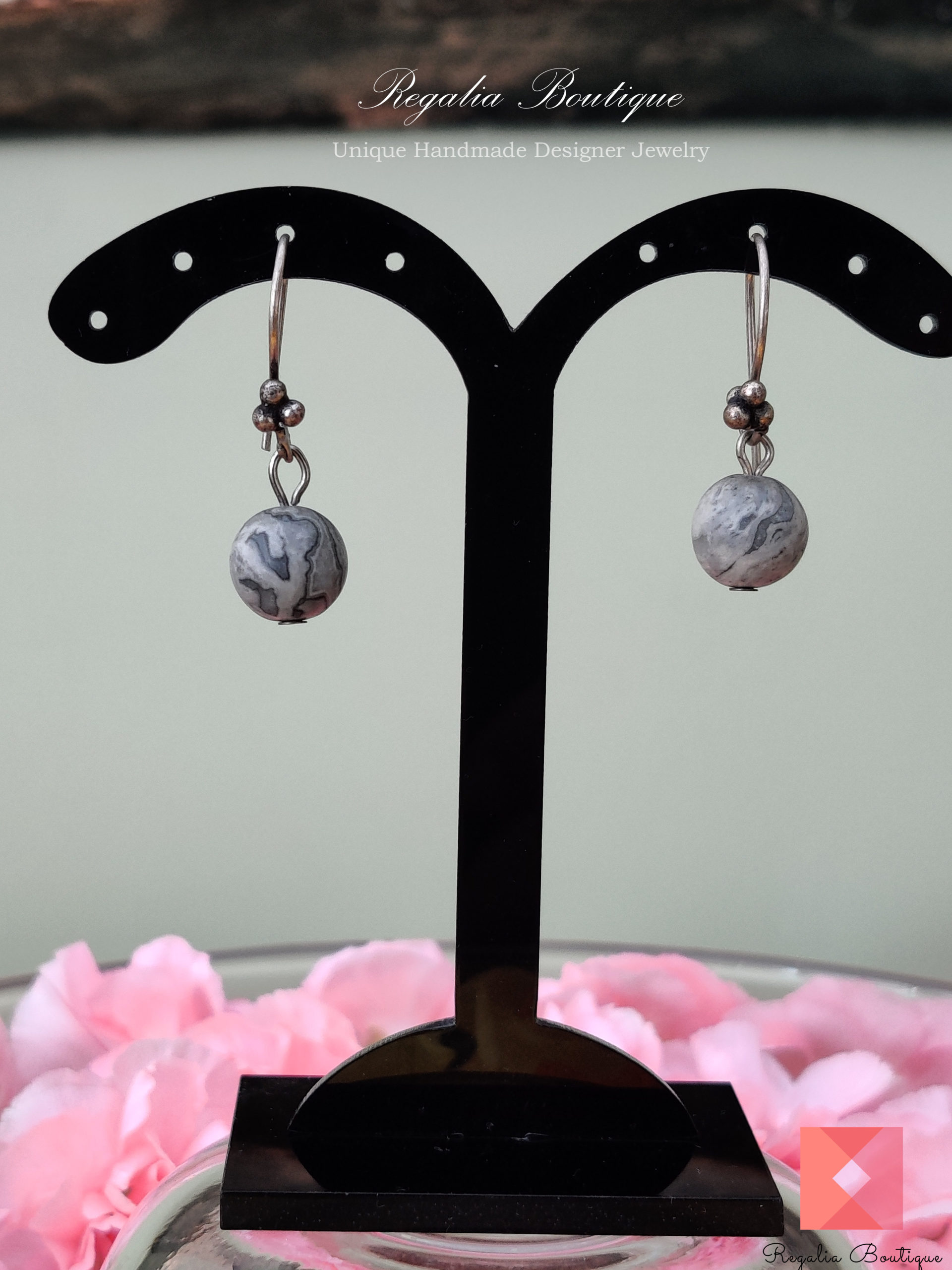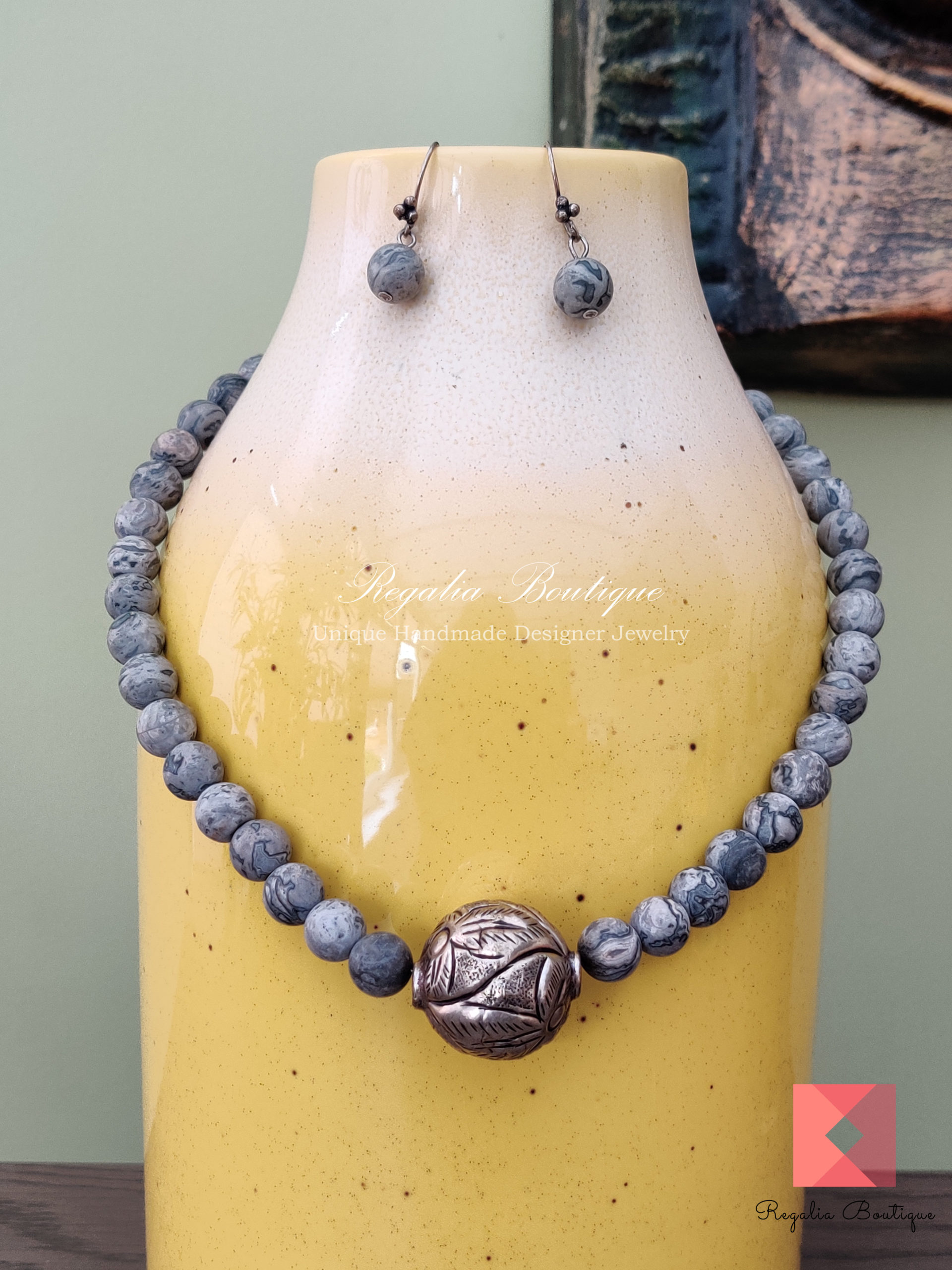 Grey Marble German Silver Necklace Set