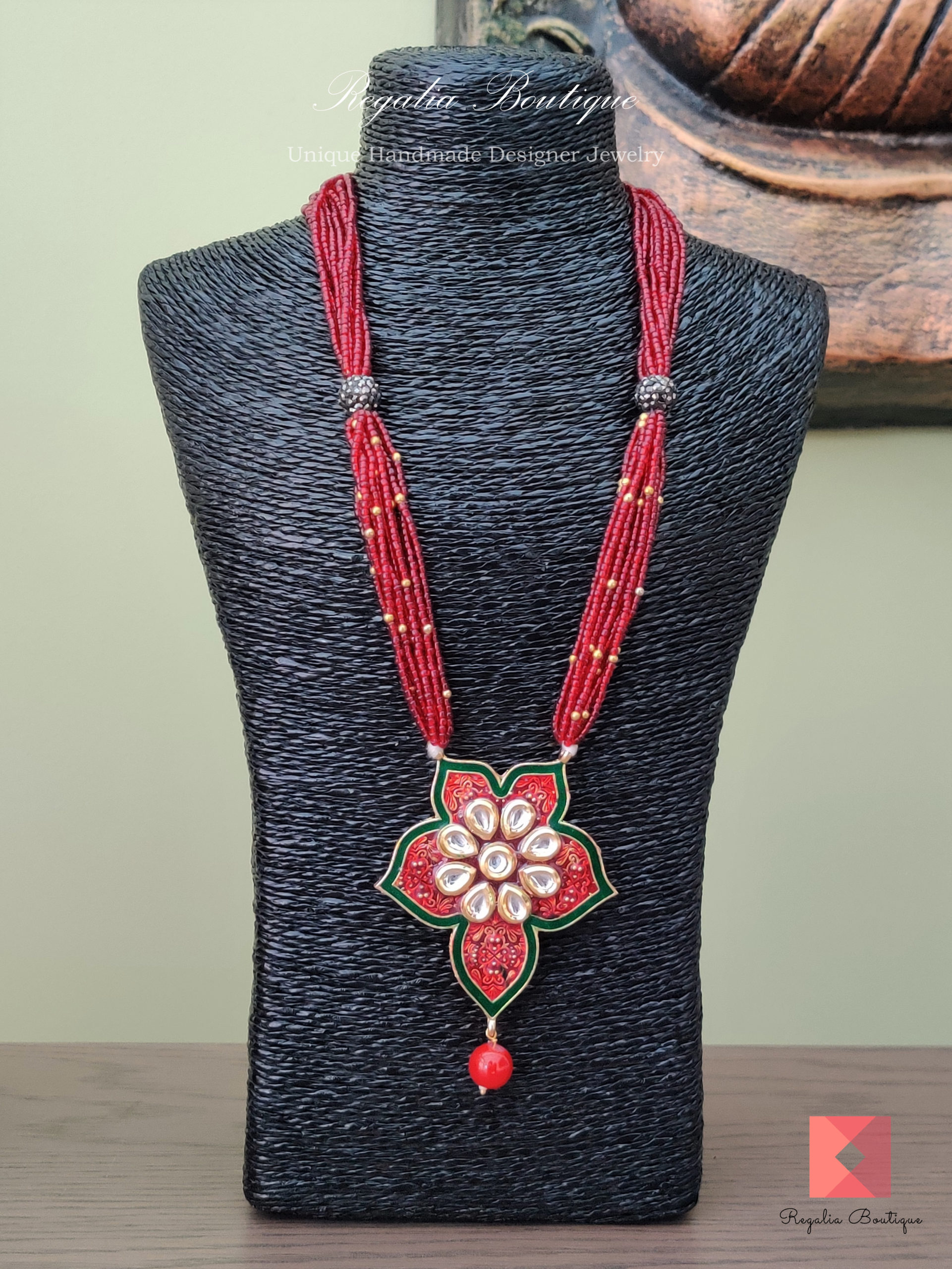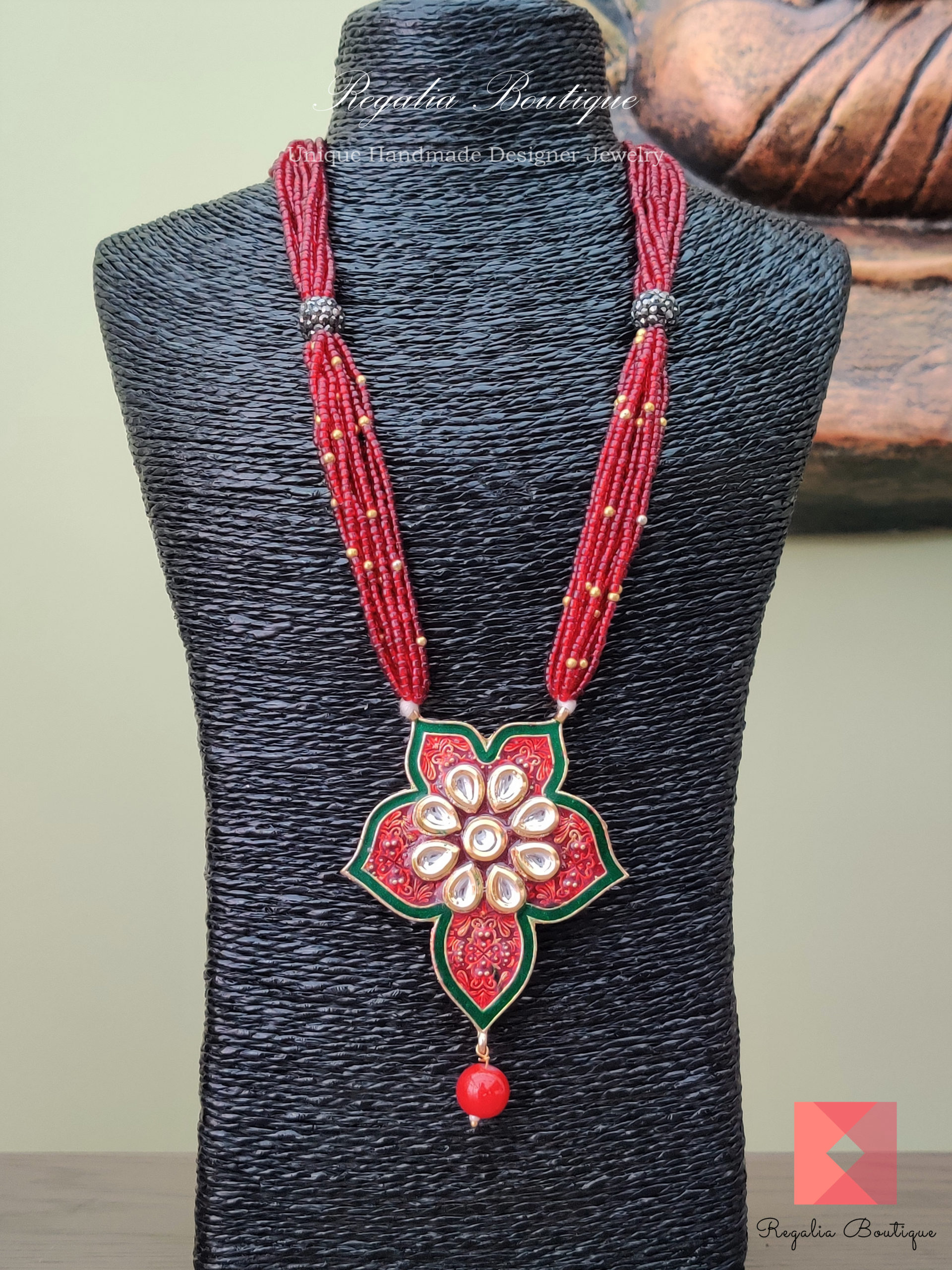 Kundan Maroon Necklace Set quantity