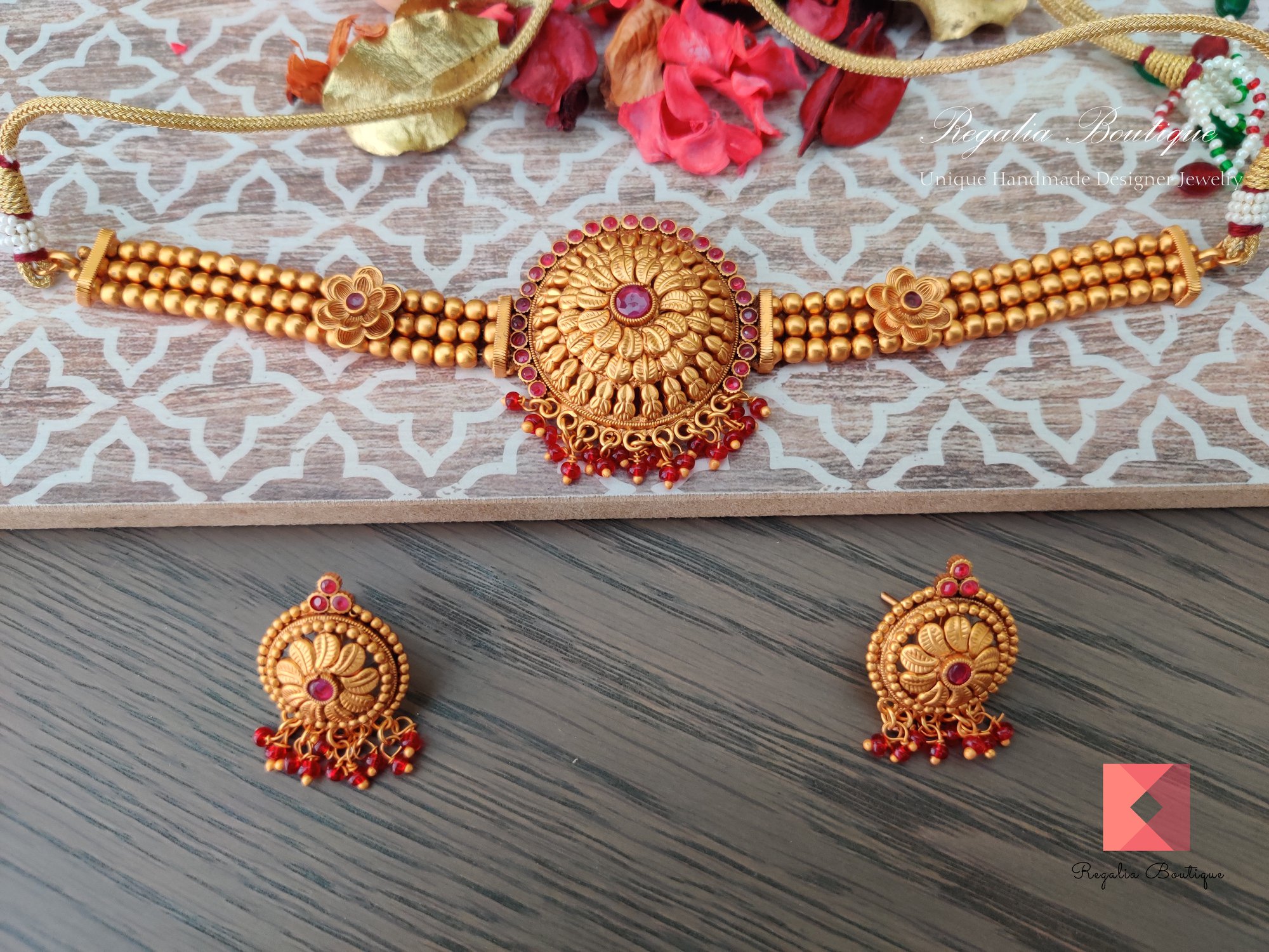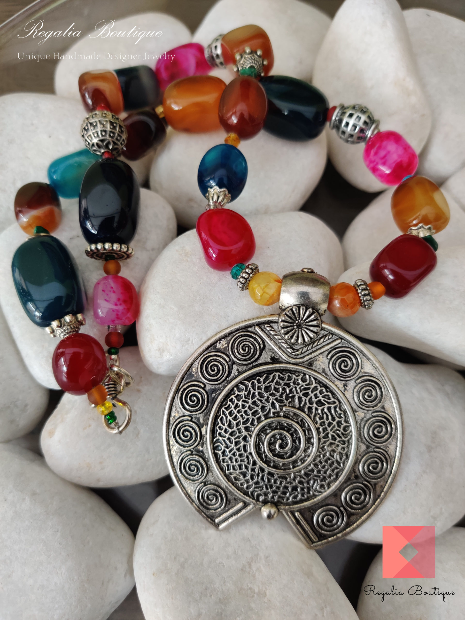 Maroon Semi-precious Necklace Set – Traditional Pendant