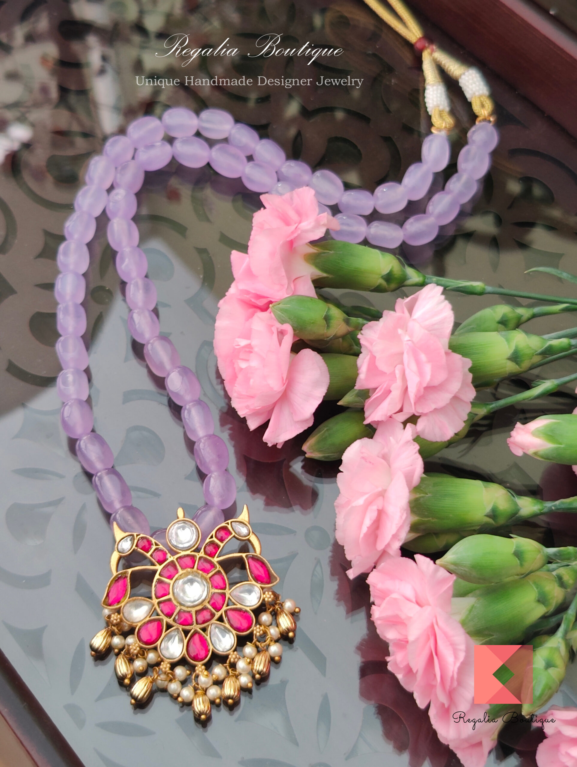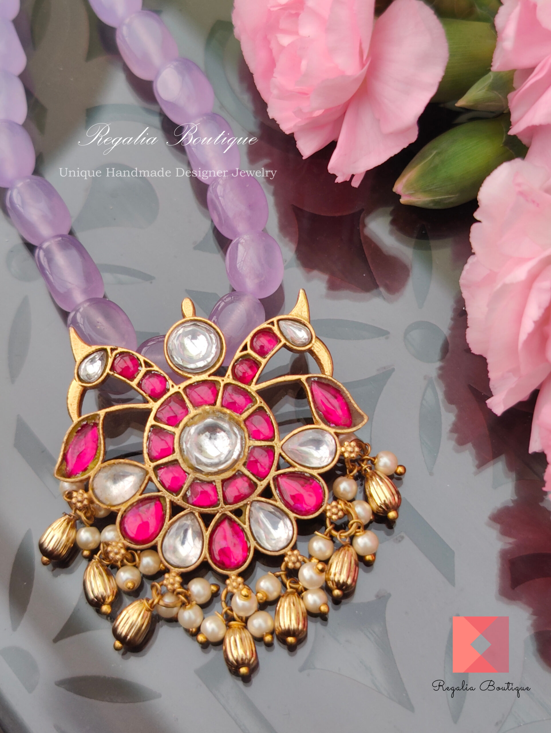 Maroon Semi-precious Necklace Set – Traditional Pendant