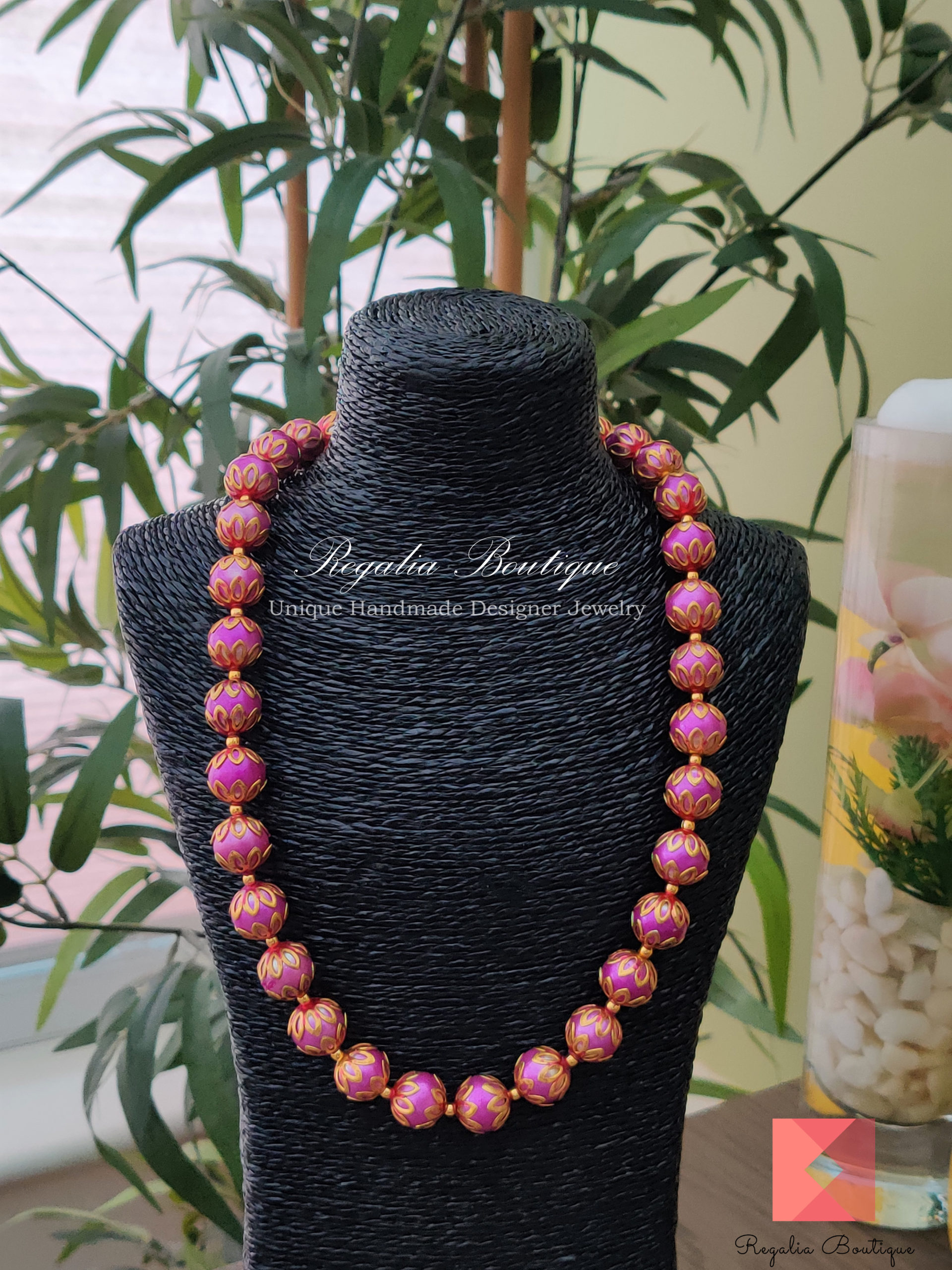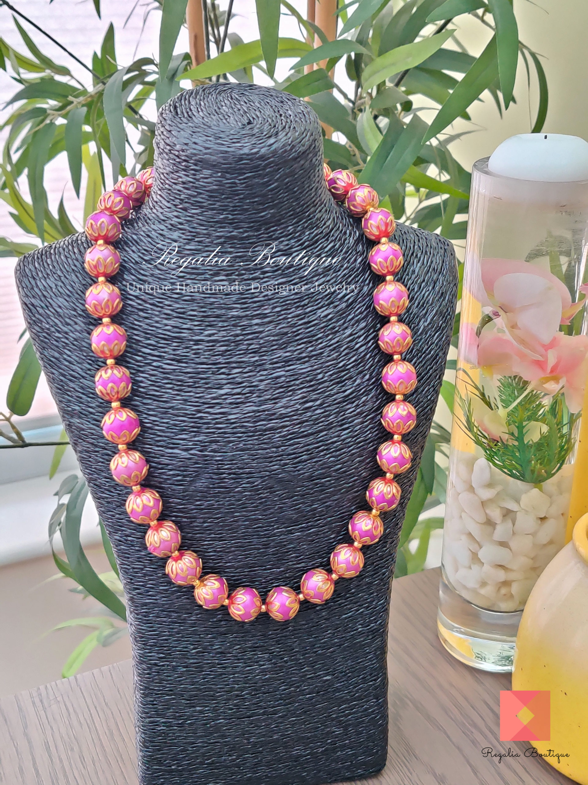 Magenta Bead Necklace.