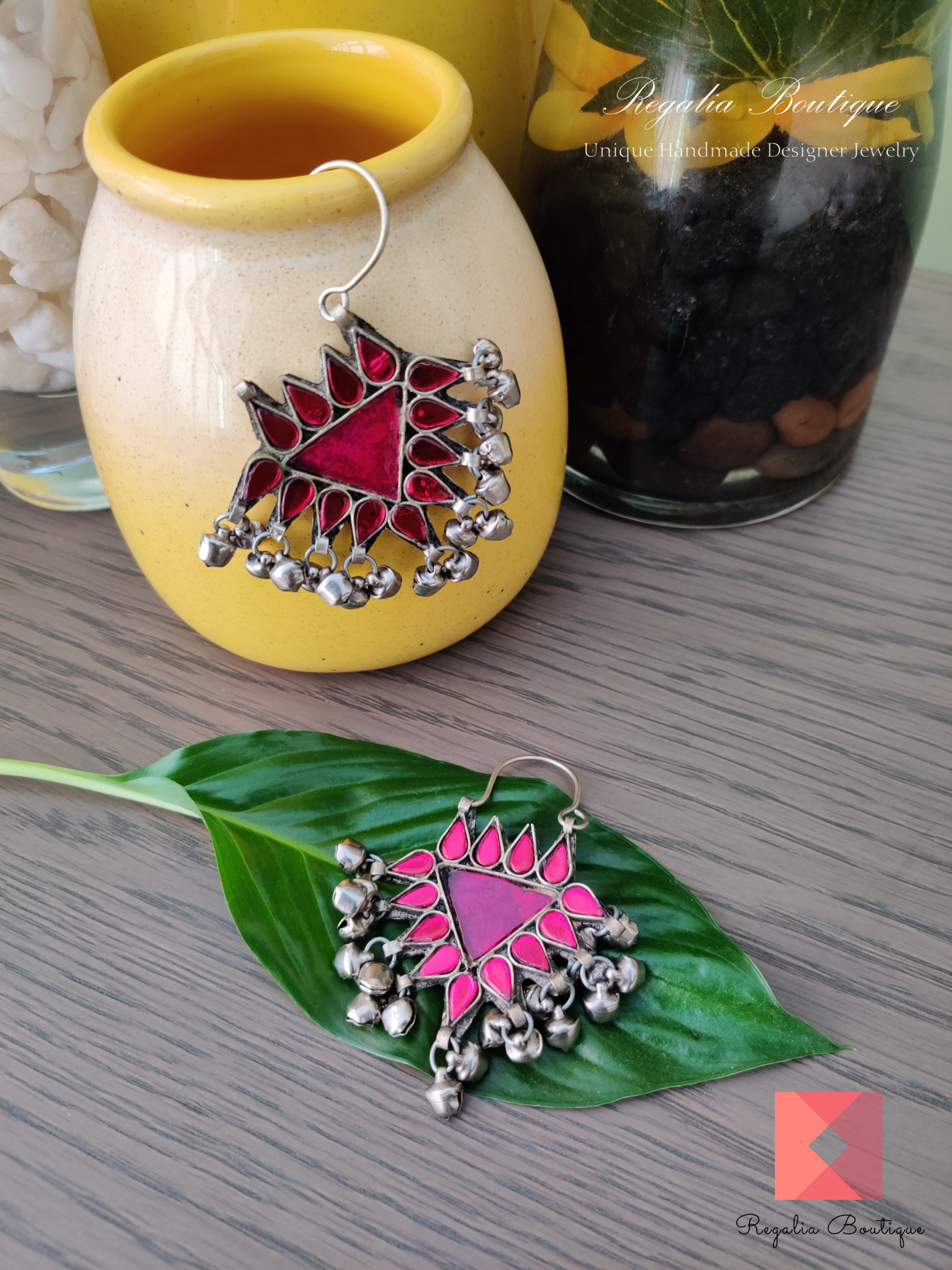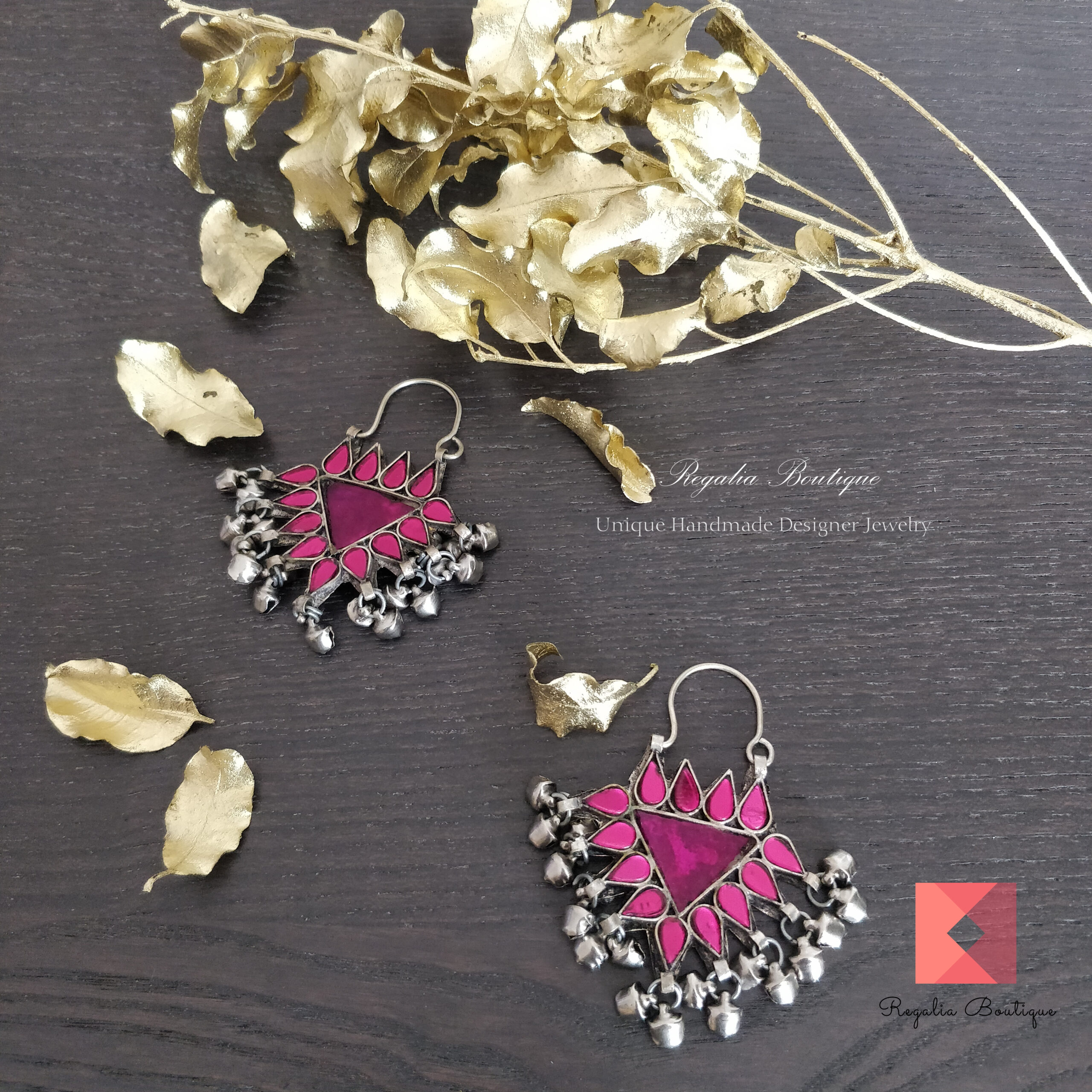 Magenta Enamel Hoop Earrings.