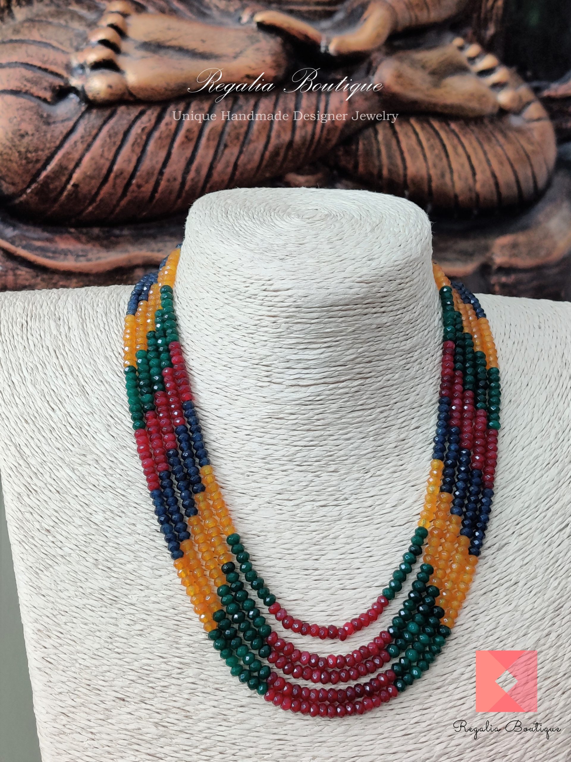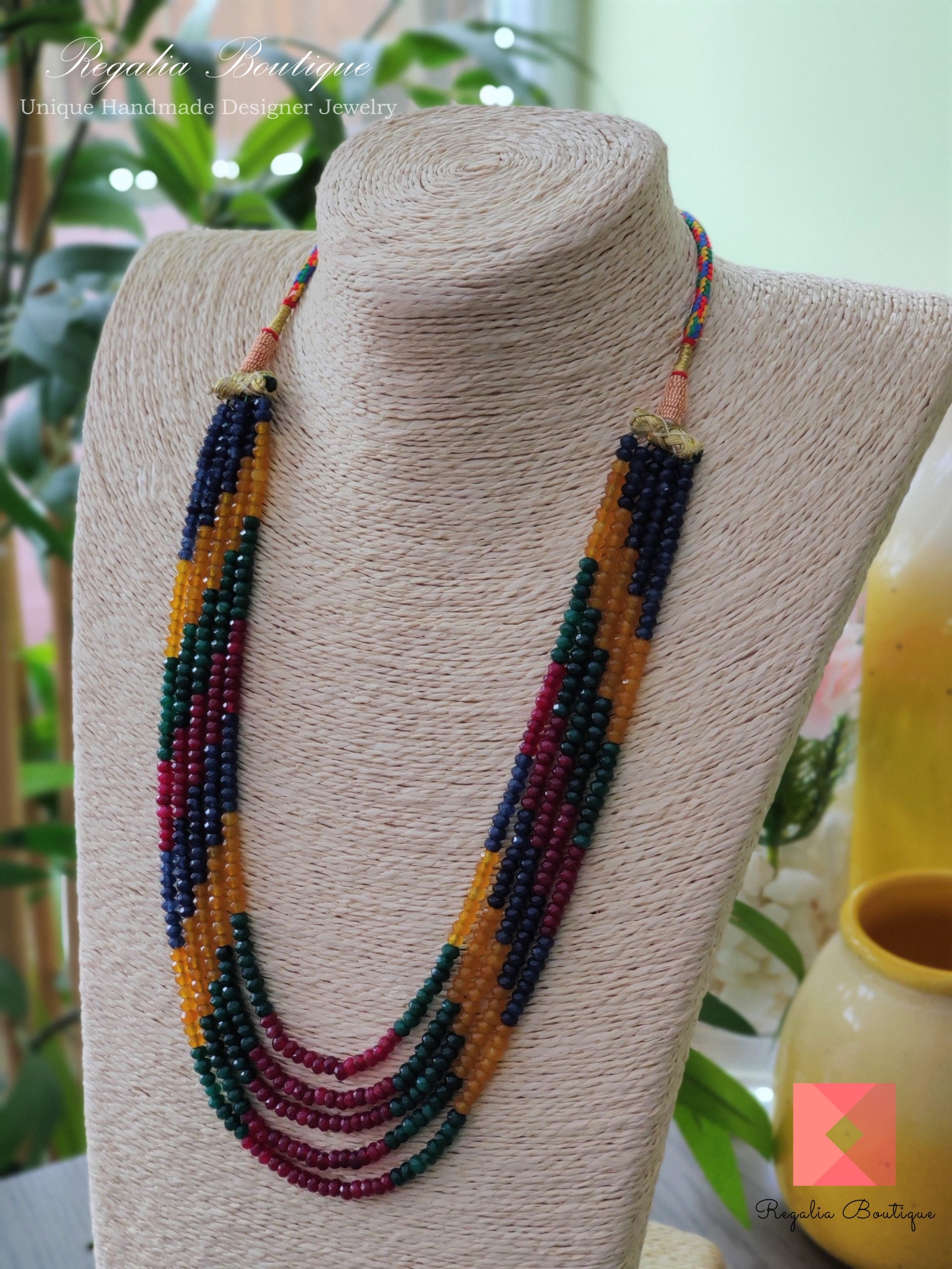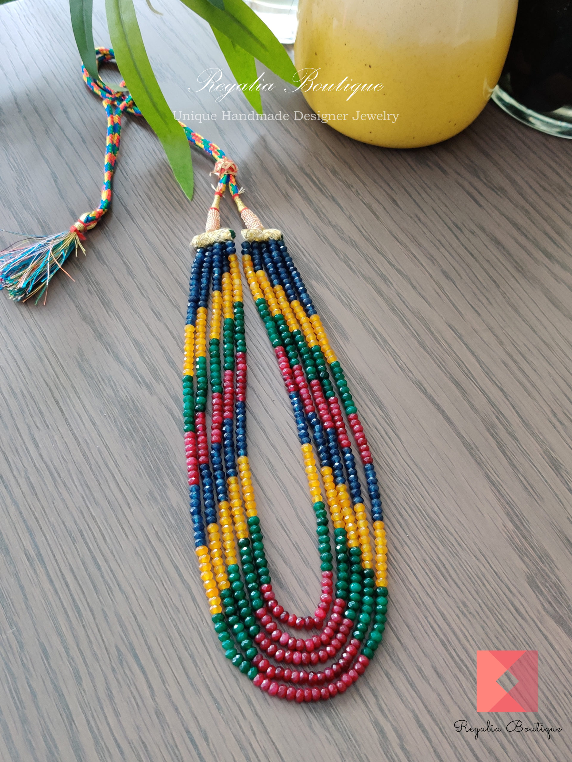 This rich and flamboyant colourful multi-layered semi-precious bead necklace is a must have. It instantly helps uplift your outfit.