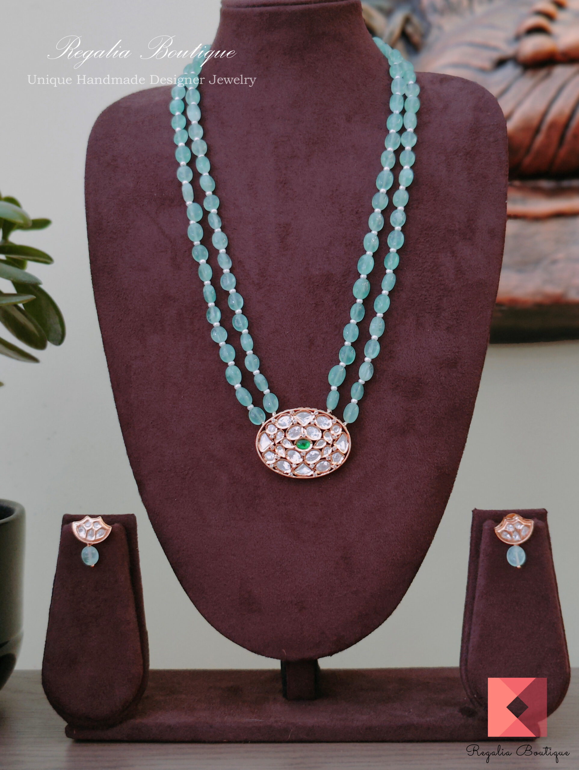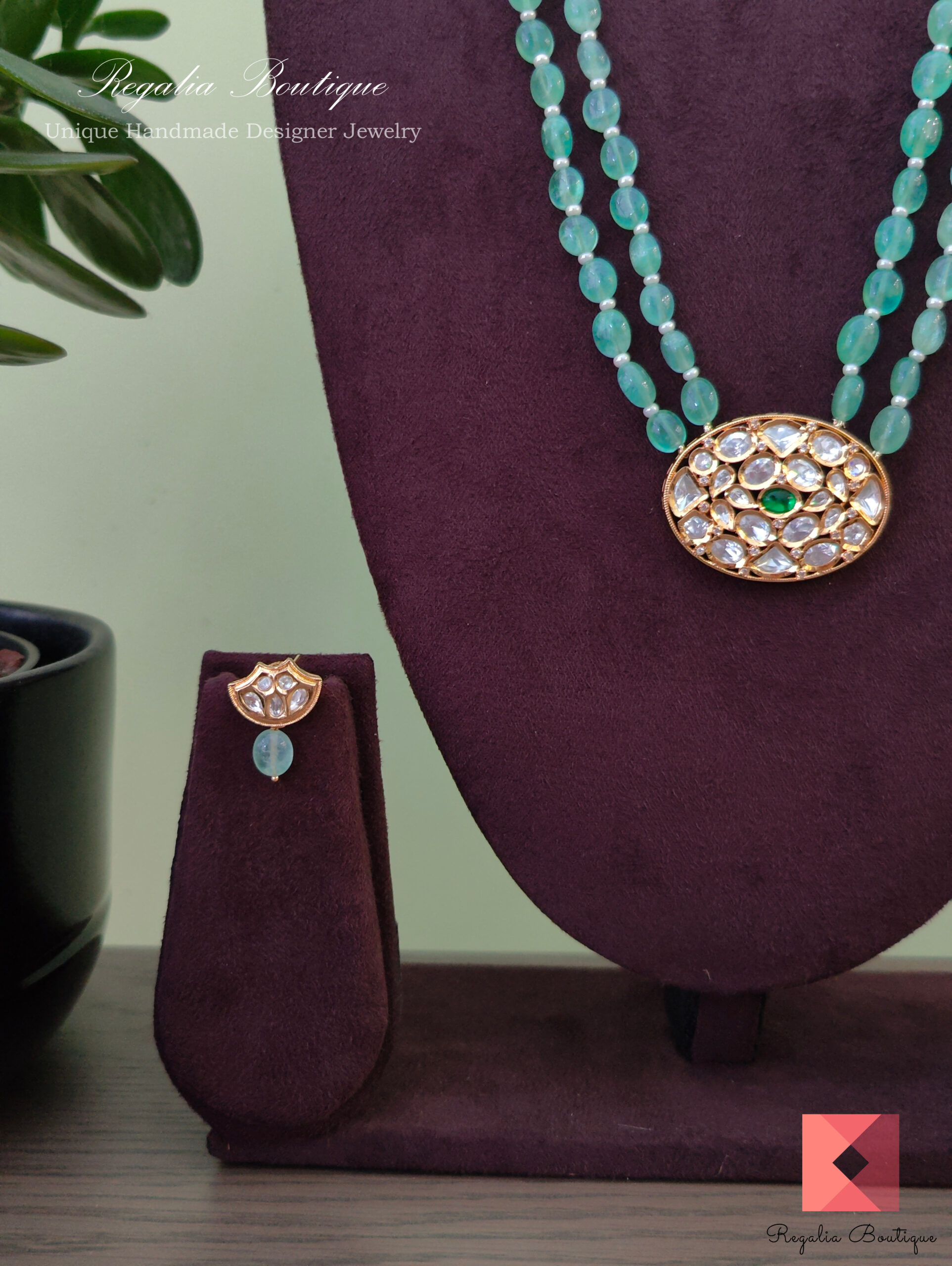 Pastel Mint Green Kundan Necklace Set