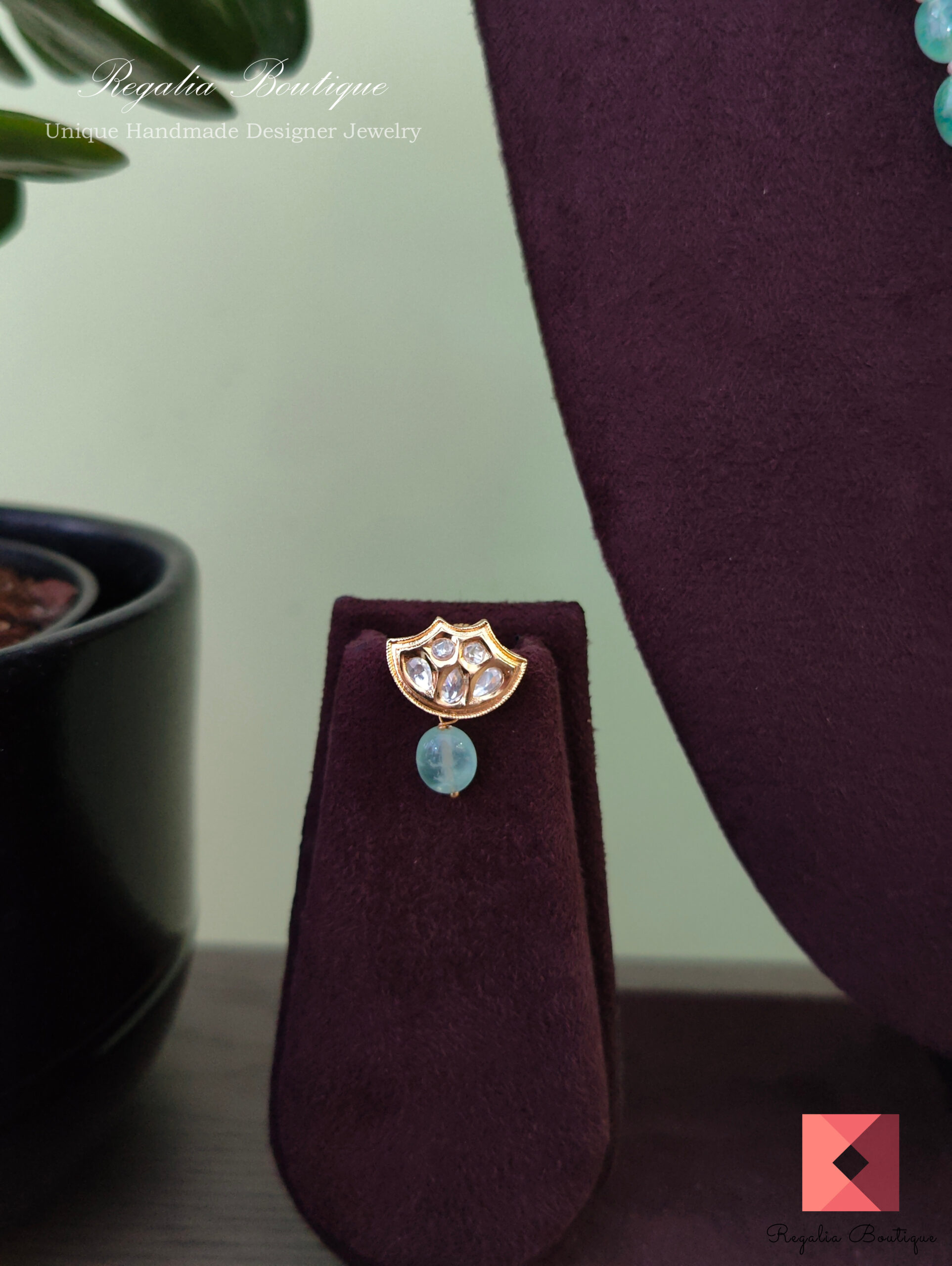 Pastel Mint Green Kundan Necklace Set quantity
