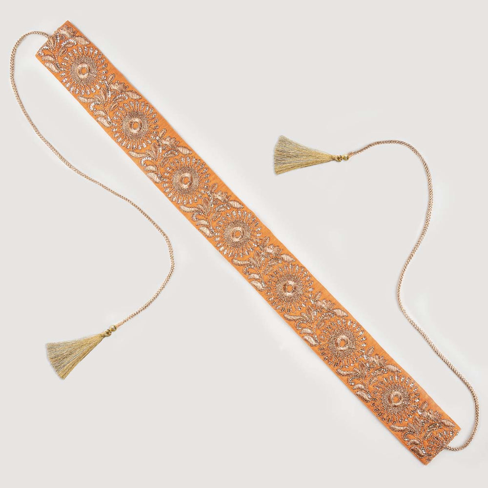 Peach Fabric Zari Hip Belt