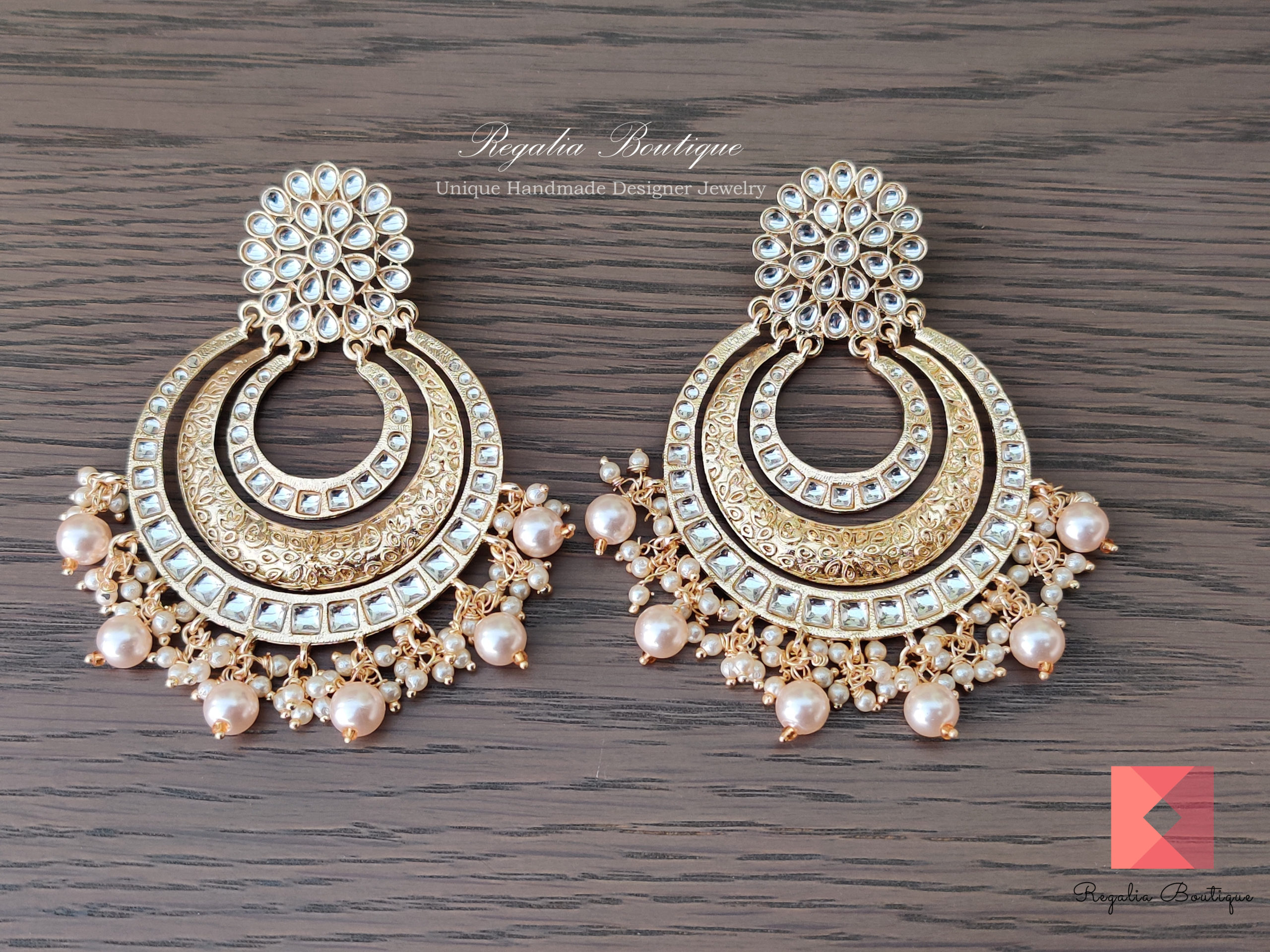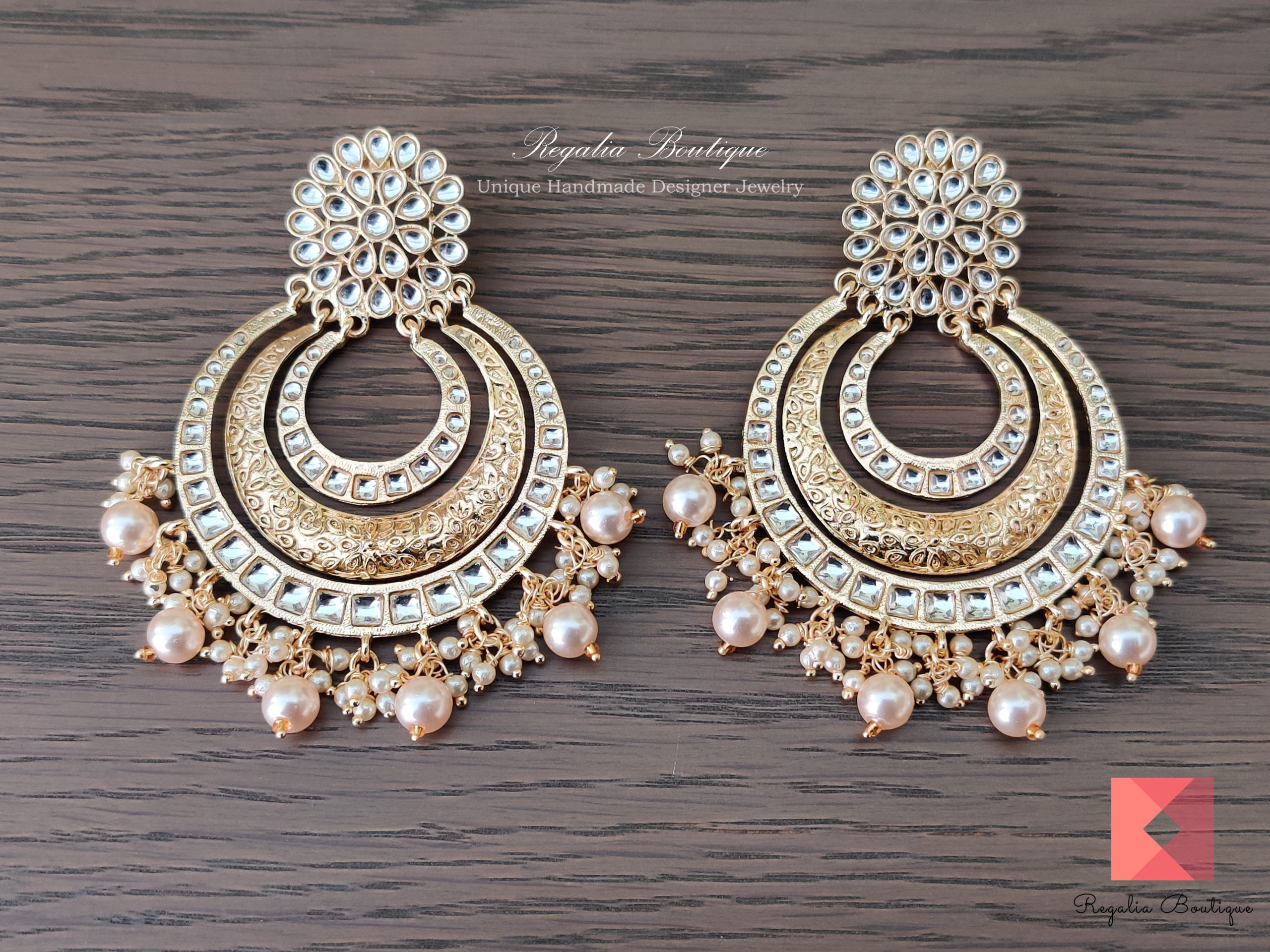 Pearl Kundan Antique Gold Chandbalis.