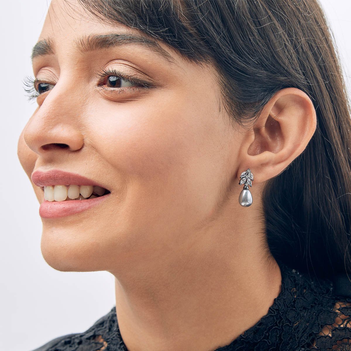 Black Teardrop Pearl Zircon Earrings
