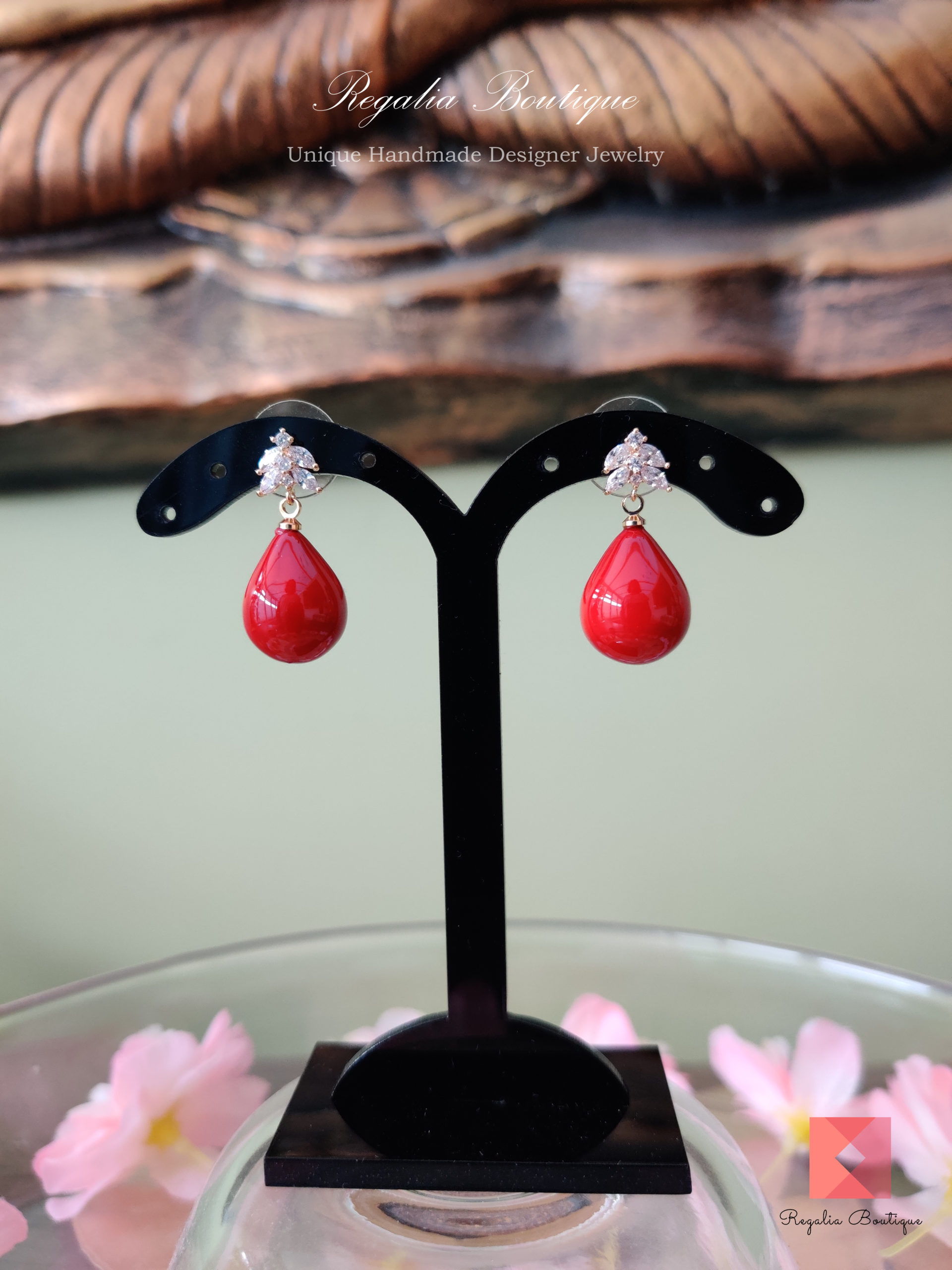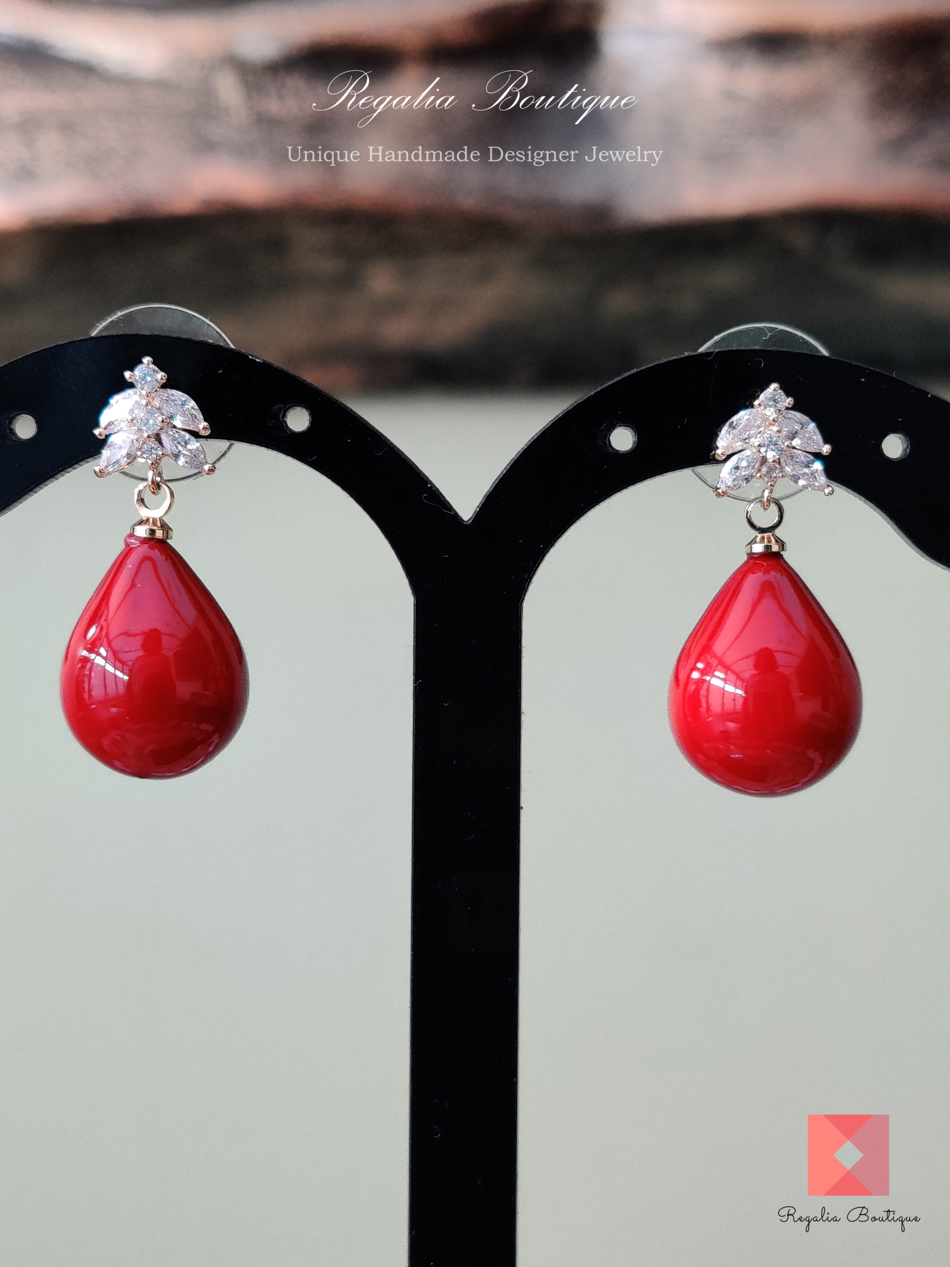 Red Teardrop Pearl Zircon Earrings