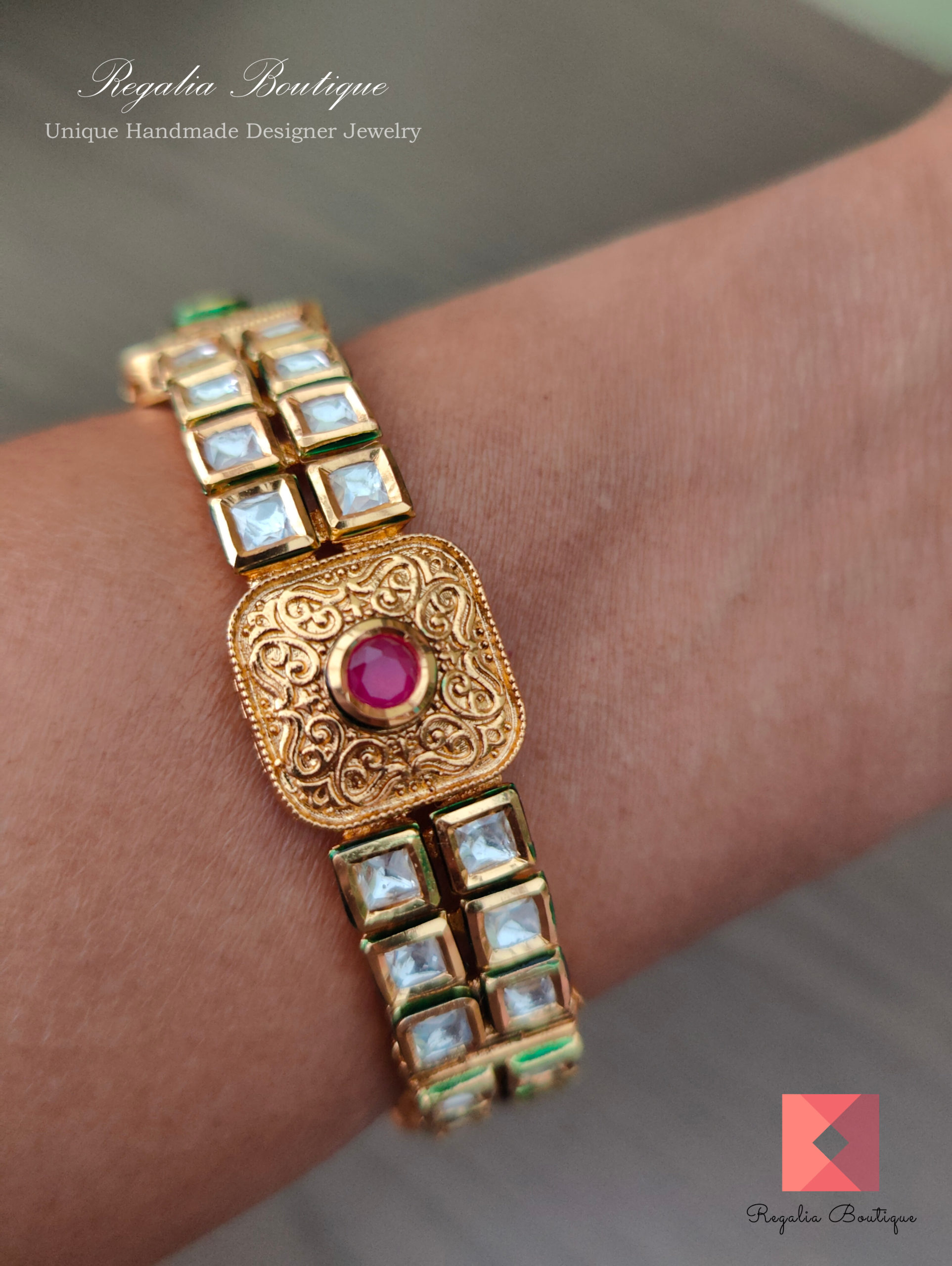 Rich High Quality Kundan Bangle with Ruby Stones.
