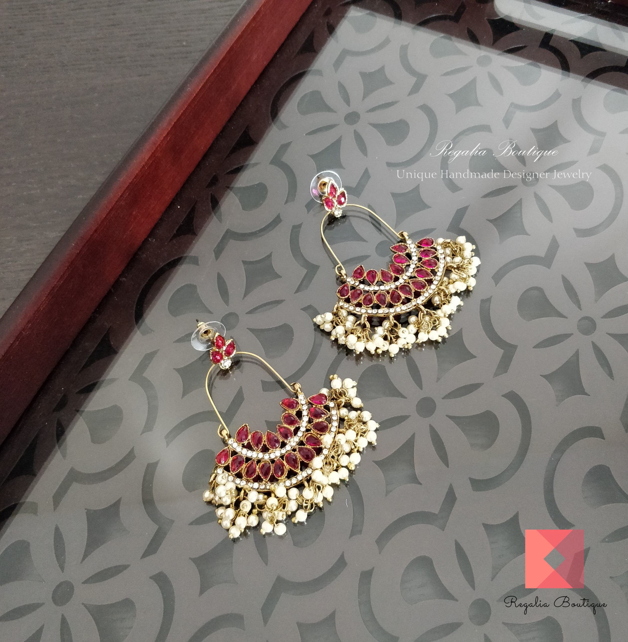 Ruby and Pearl Studded Earrings quantity