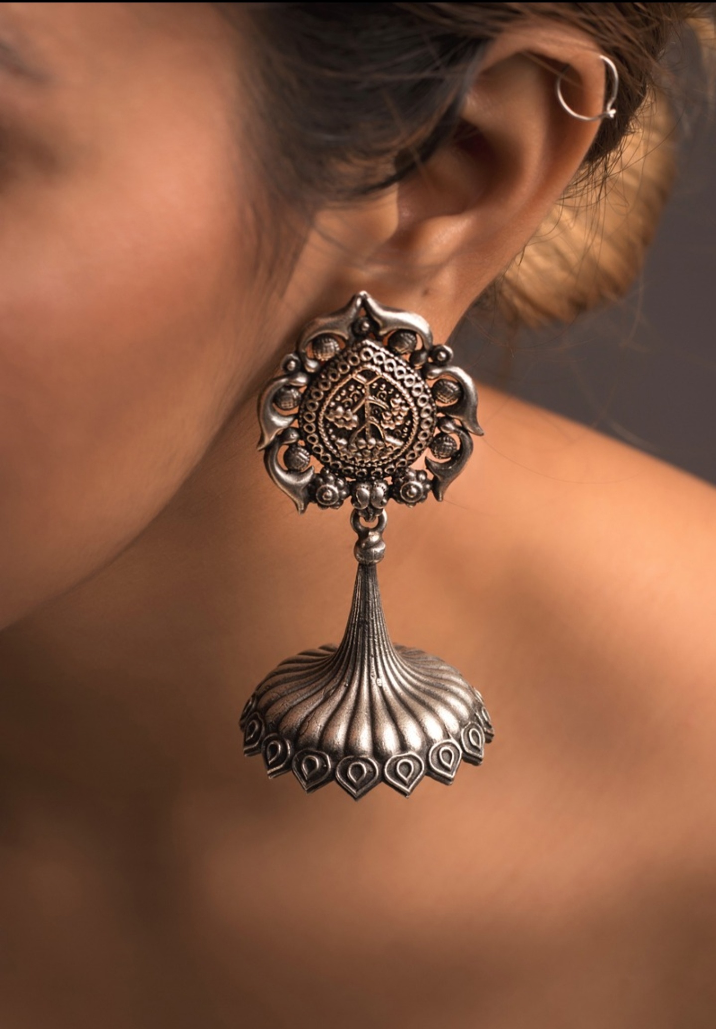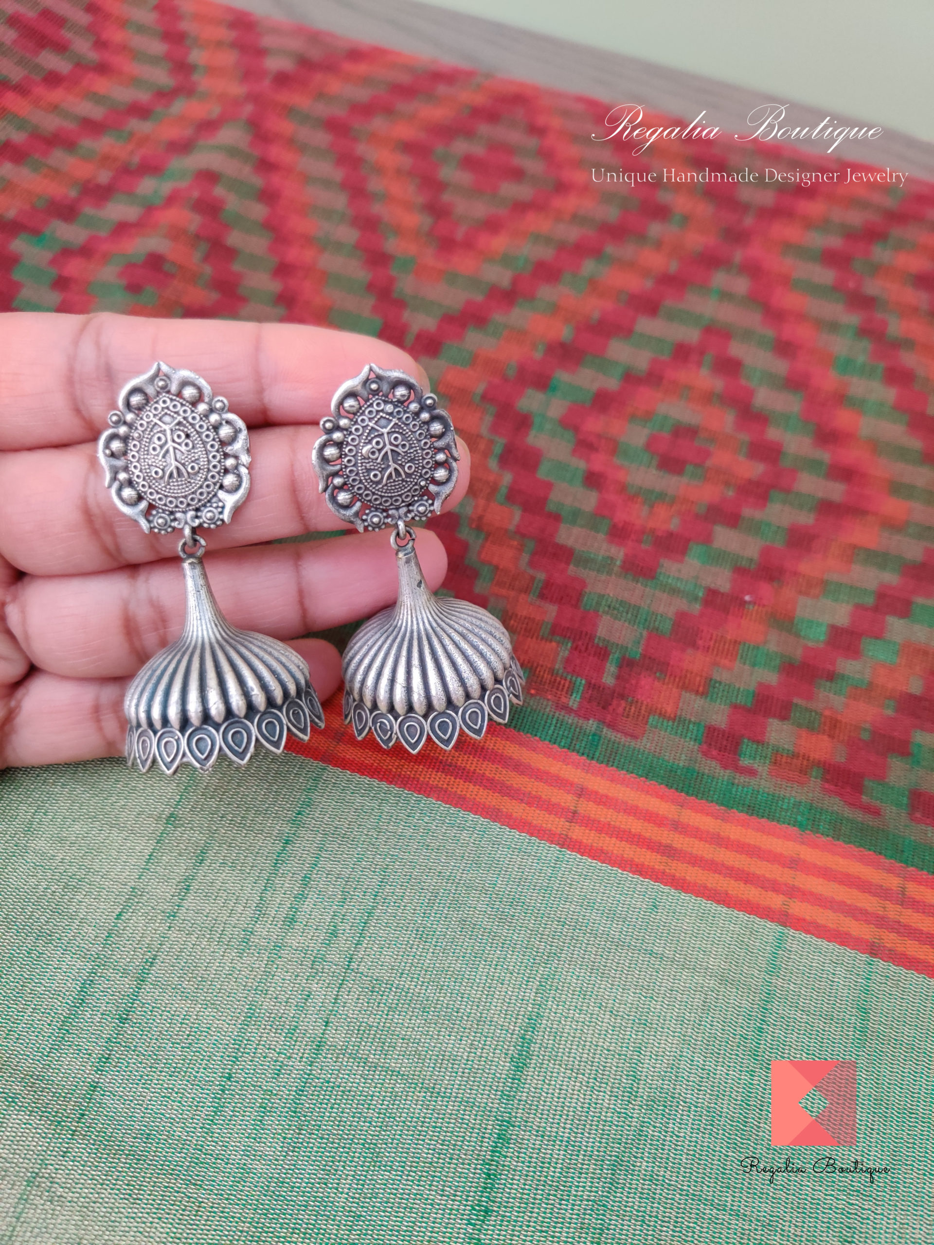 Silver look alike jhumkas.