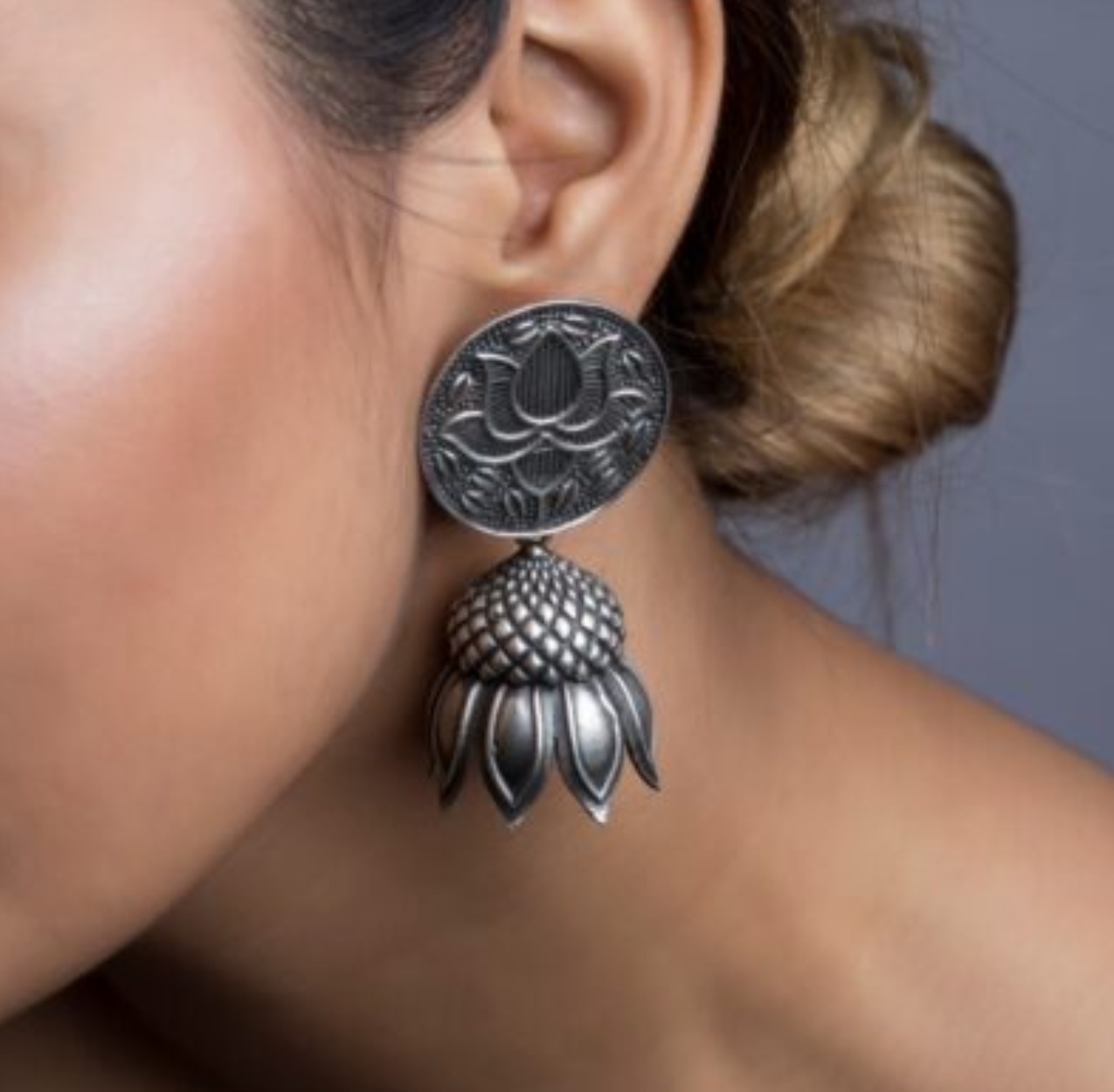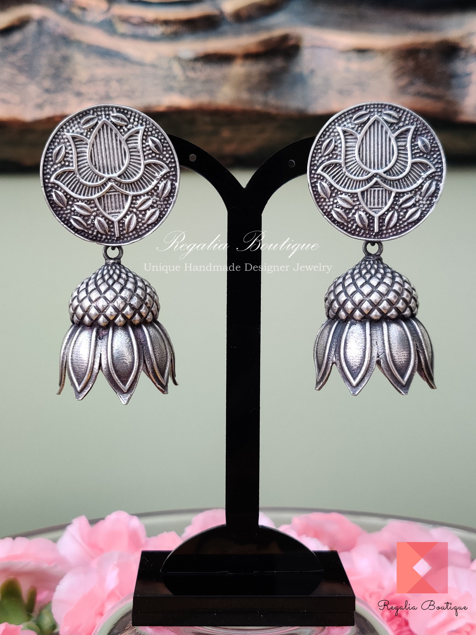 Silver ‘Look-Alike’ Lotus Flower Jhumkas