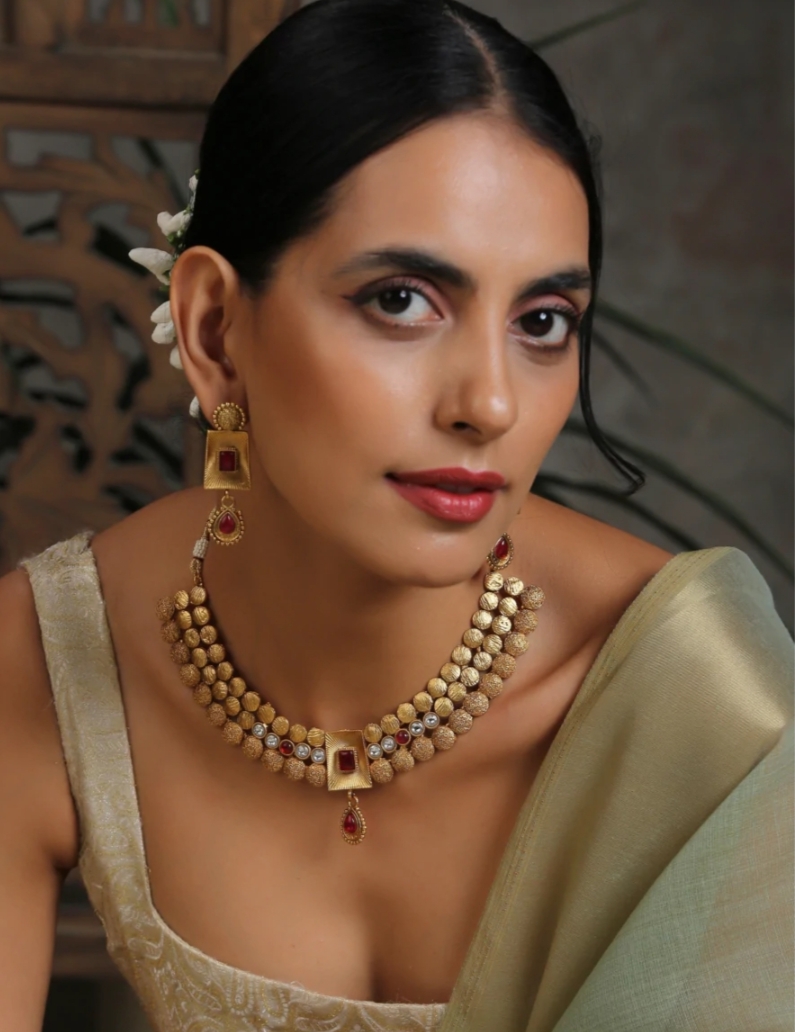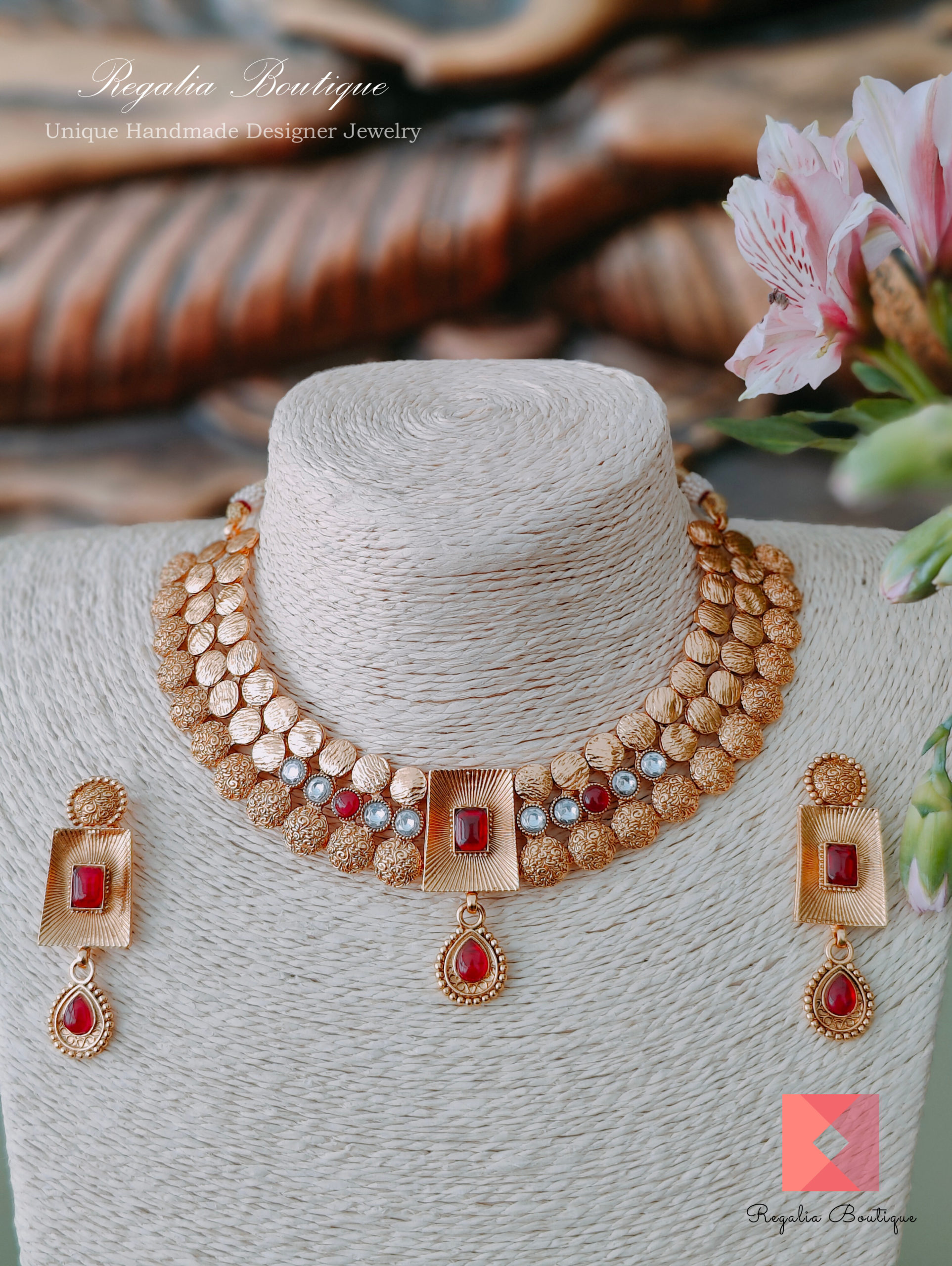 Ruby Flower Necklace Set