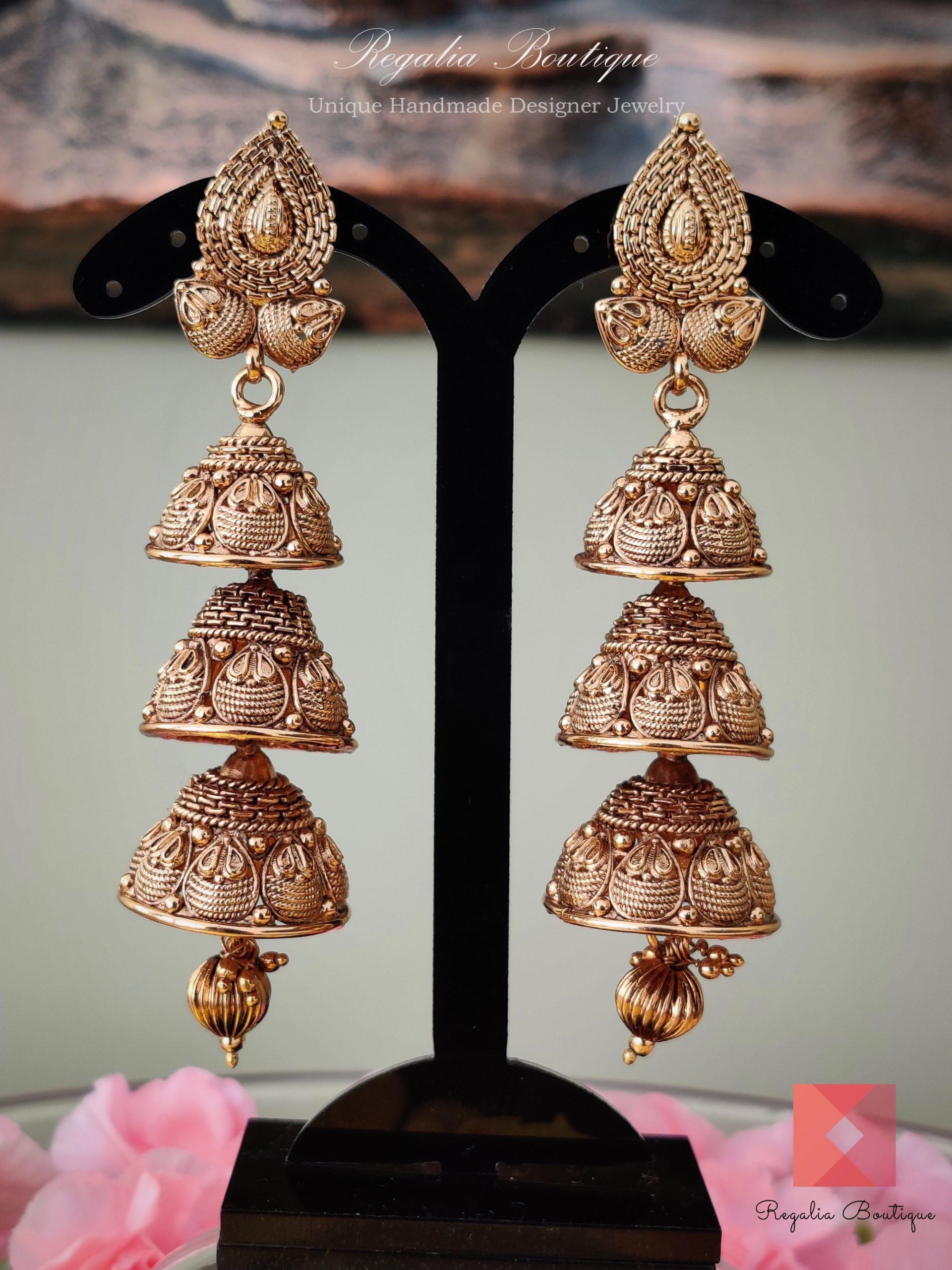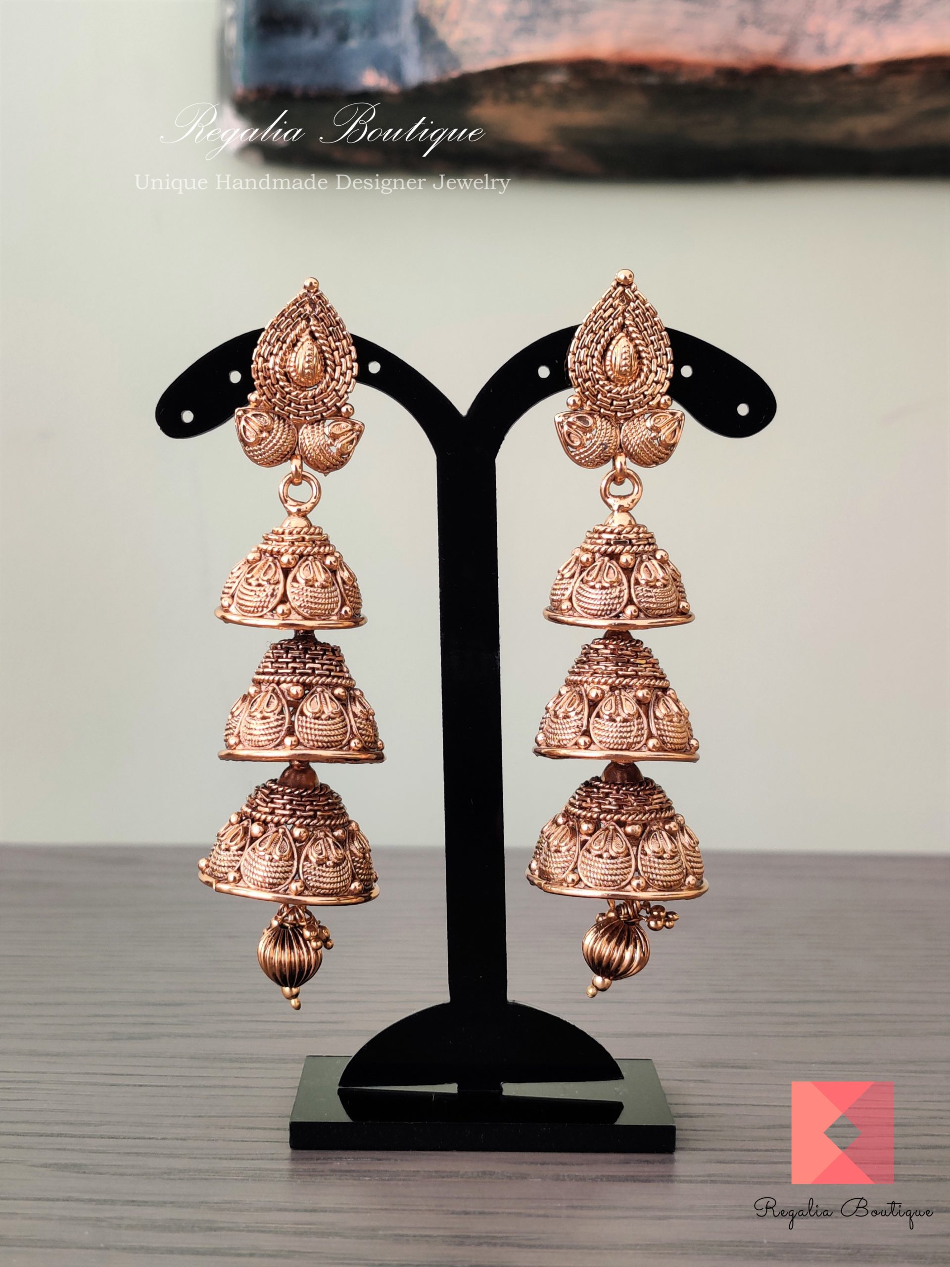 Tri-Layered Antique Jhumkas