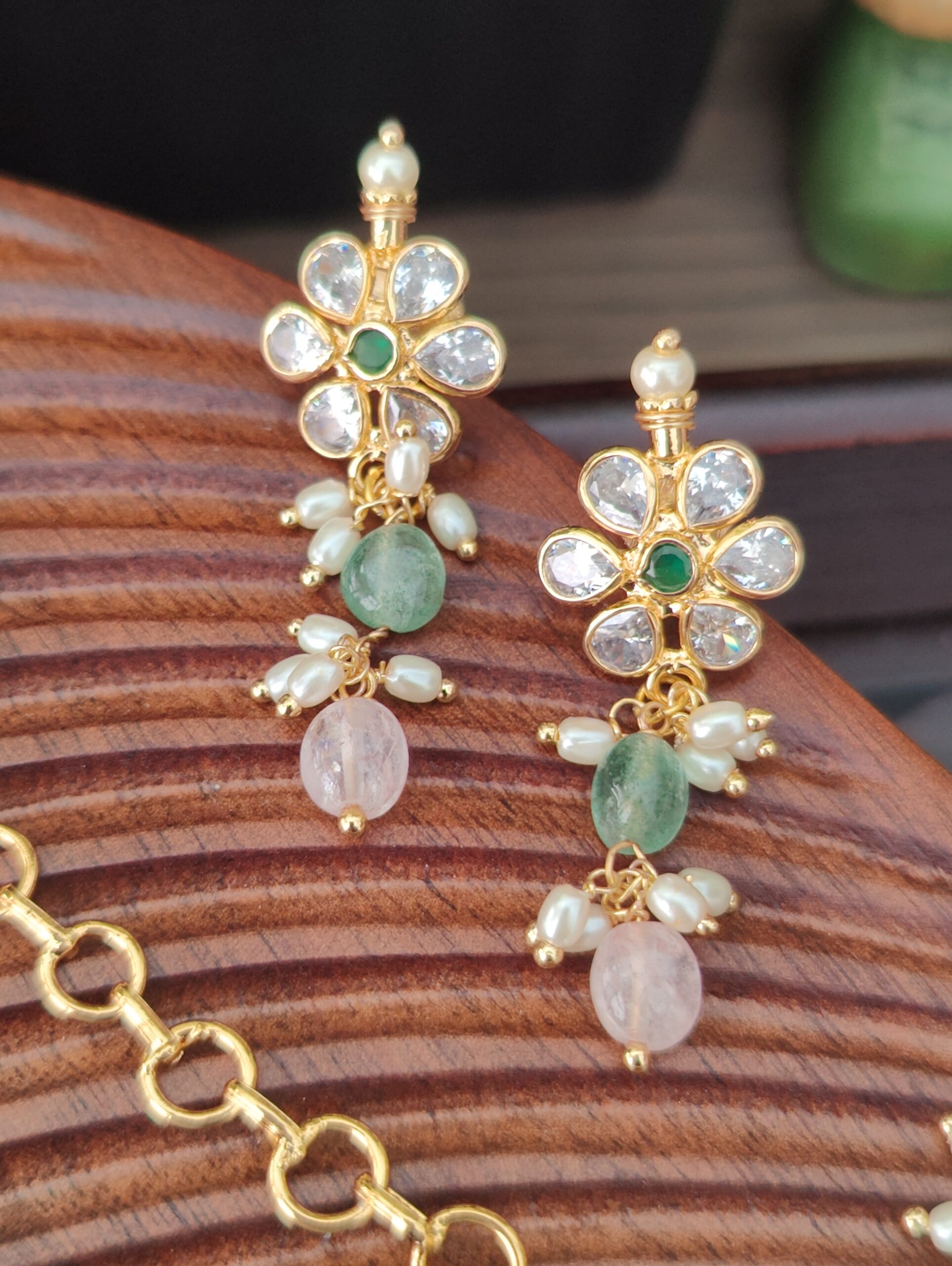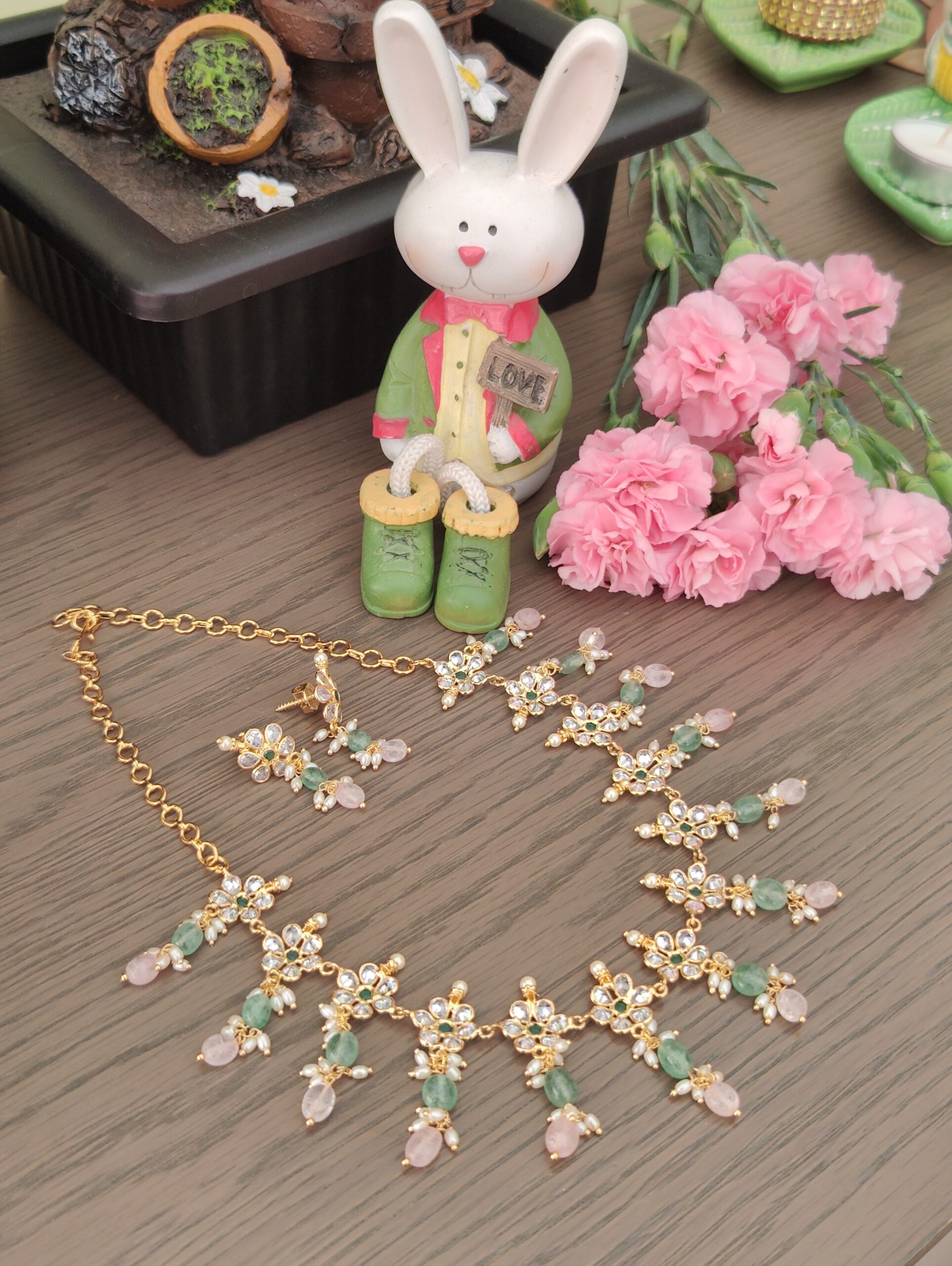 Green Semi-precious Beads Kundan Necklace